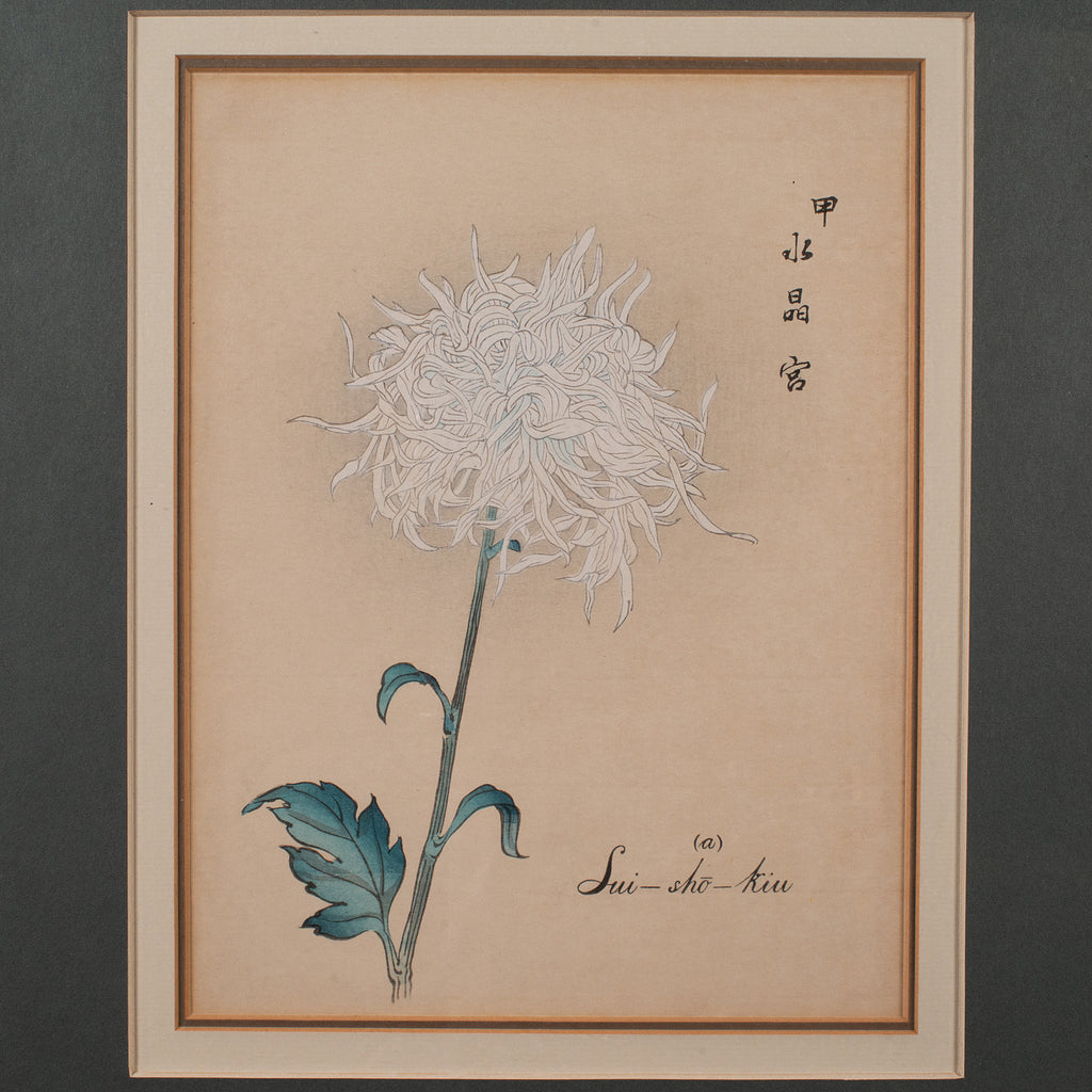 Hasegawa published woodcuts in a series of three volumes known as One Hundred Chrysanthemums by Keika in 1893.