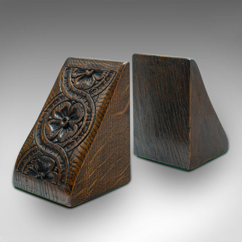 Pair Of Antique Bookends, Scottish, Oak, Decorative Book Rest, Gothic, Victorian