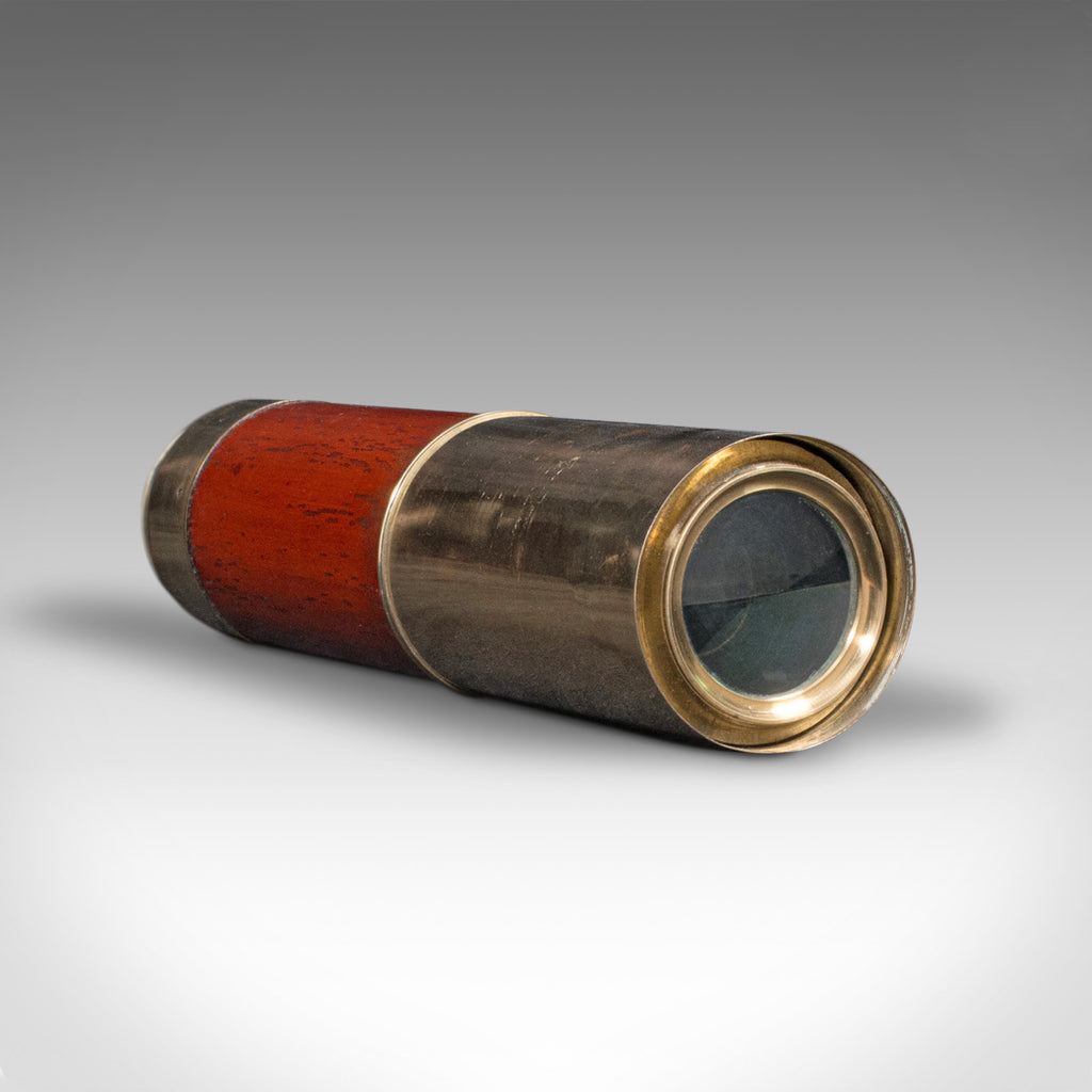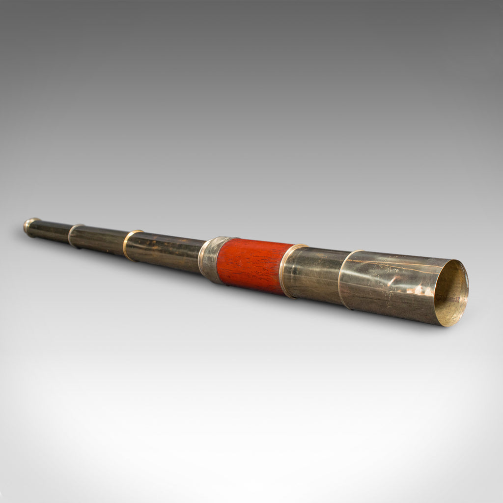 This is an antique 3 draw telescope. An English, brass 'Day or Night' terrestrial or astronomical refractor, dating to the mid Victorian period, circa 1860.