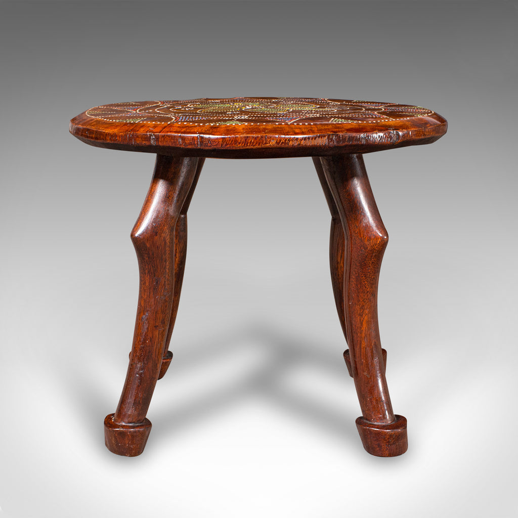 This is an antique tribal side table, an African fruitwood occasional stool or lamp table, dating to the late Victorian period, circa 1900.
