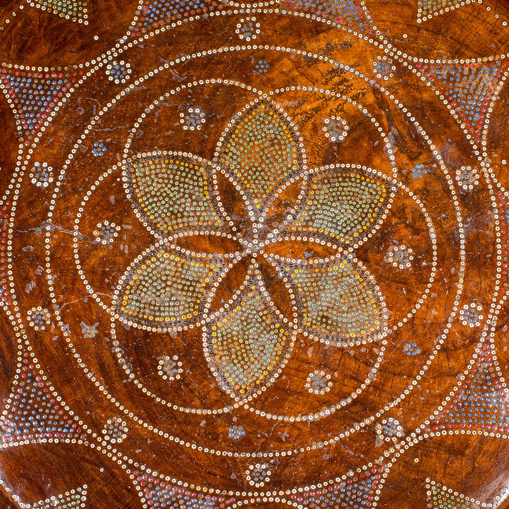 • Circular top adorned with a charming coral bead motif, displaying naive artistry