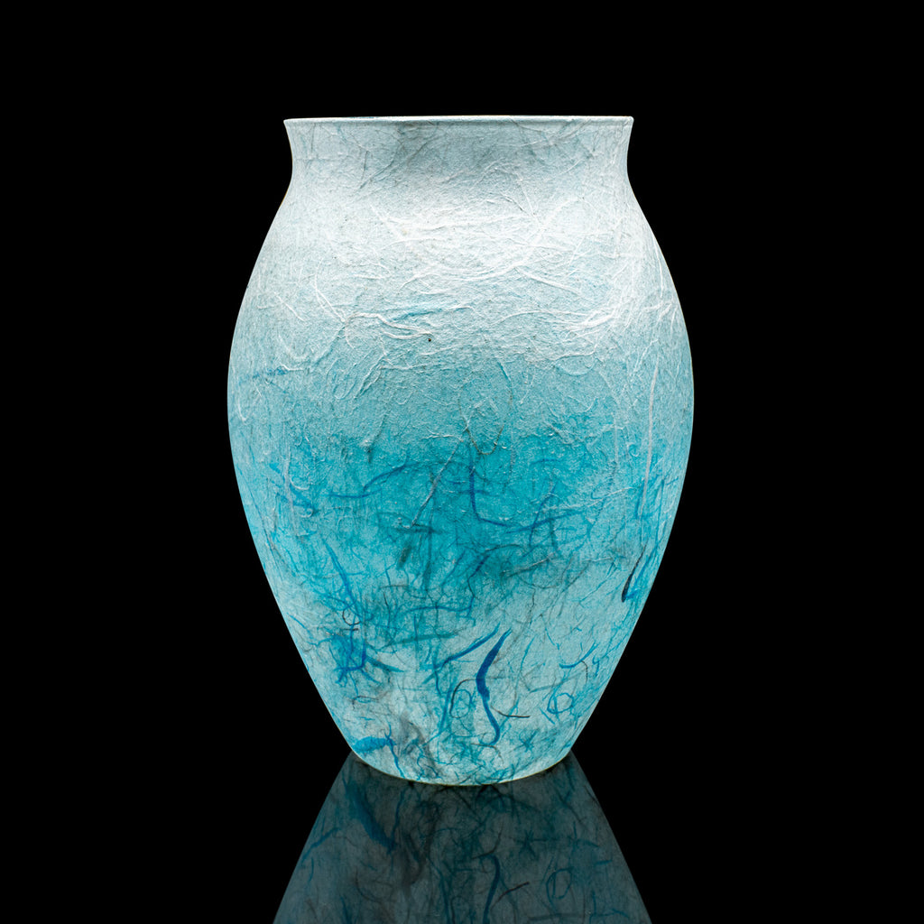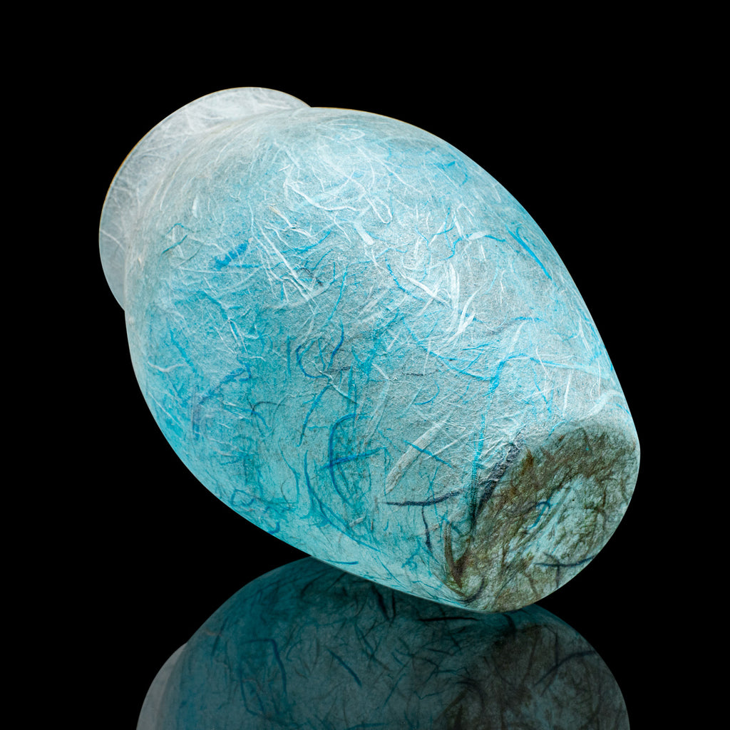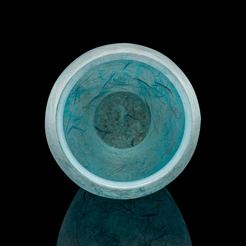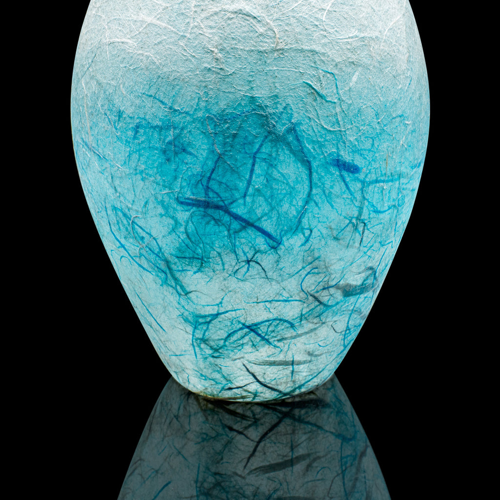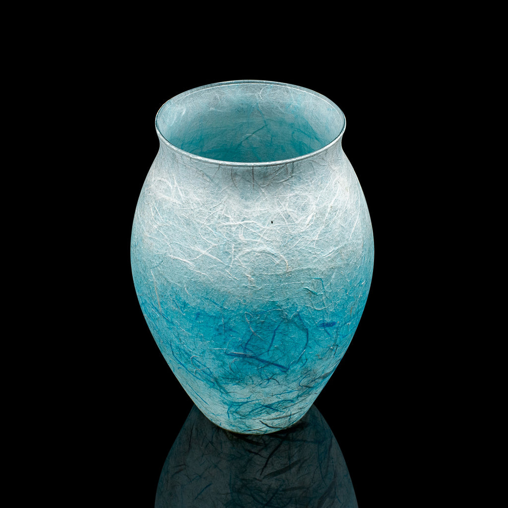 - Silk straw covered glass with a baby blue and light turquoise palette