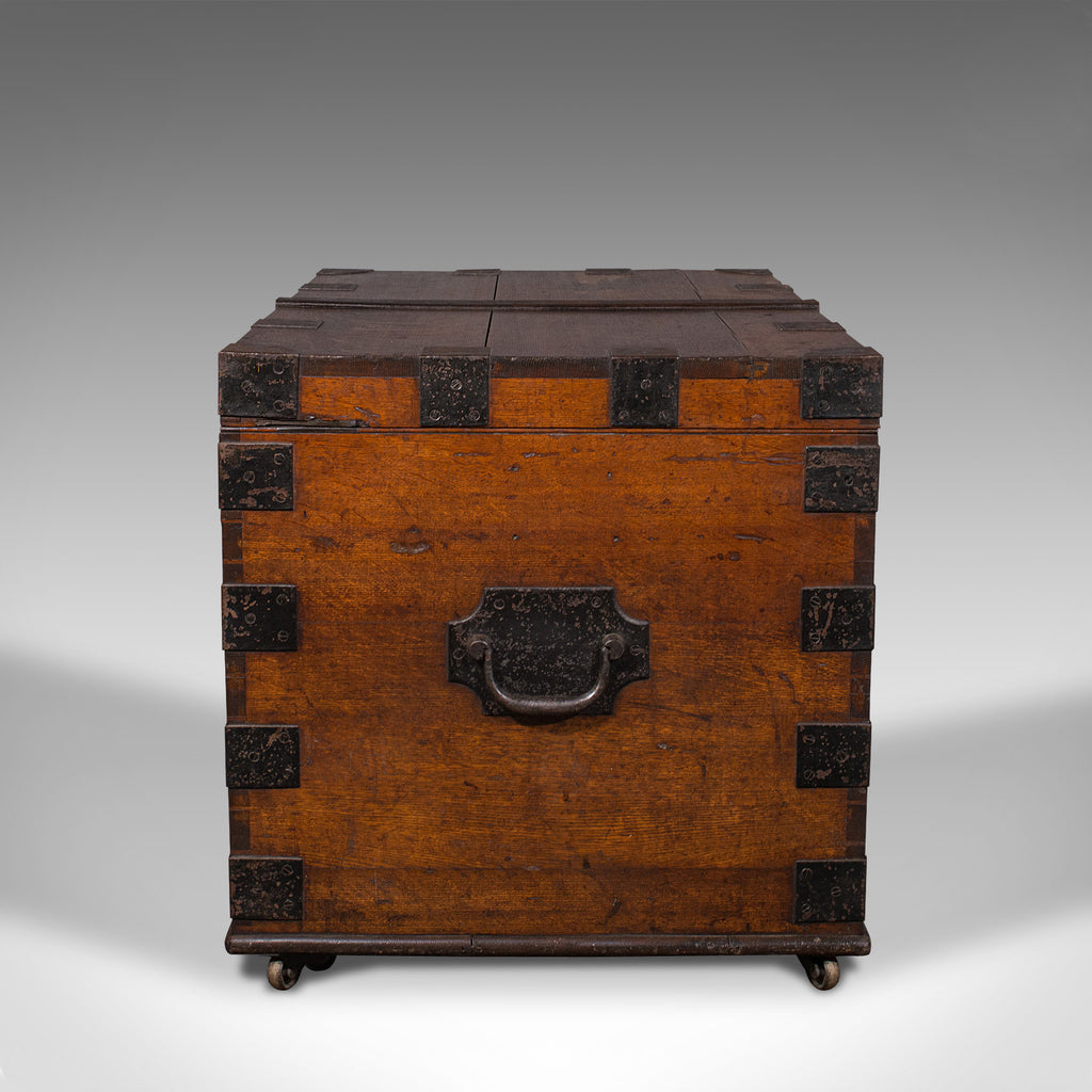 Large Antique Silver Chest, Scottish, Oak, Iron, Heavy Trunk, Victorian, C.1880