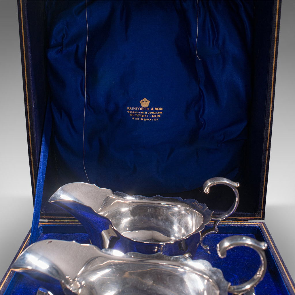 Pair, Antique Sauce Boats, British, Silver, Condiment Dish, Hallmarks, Edwardian