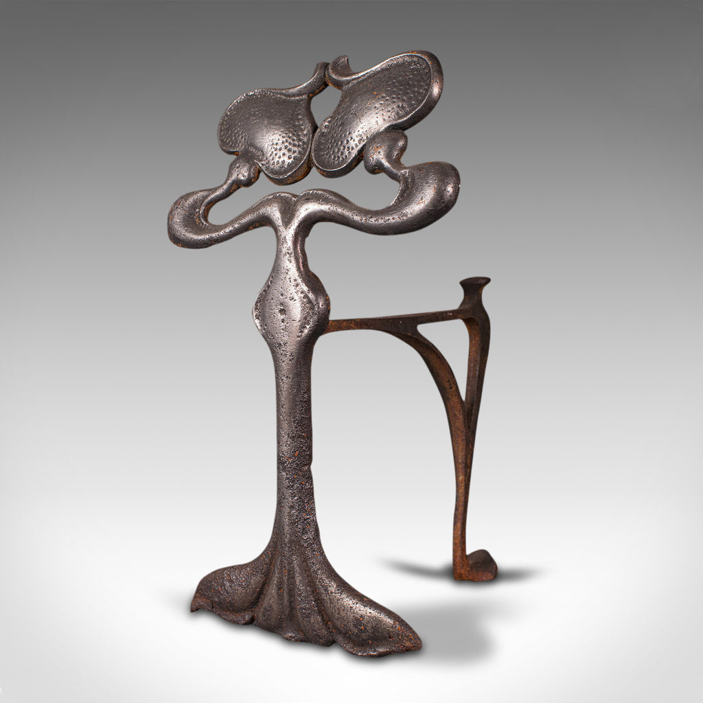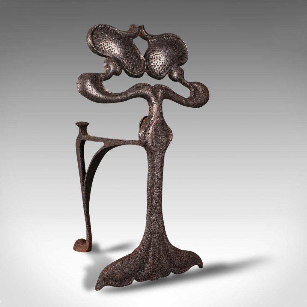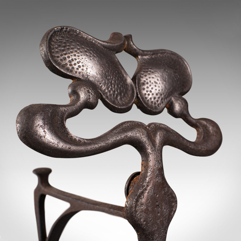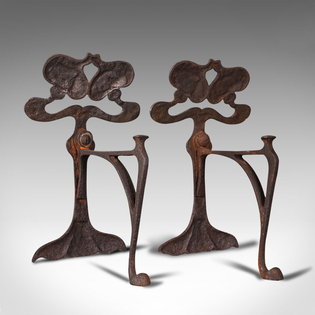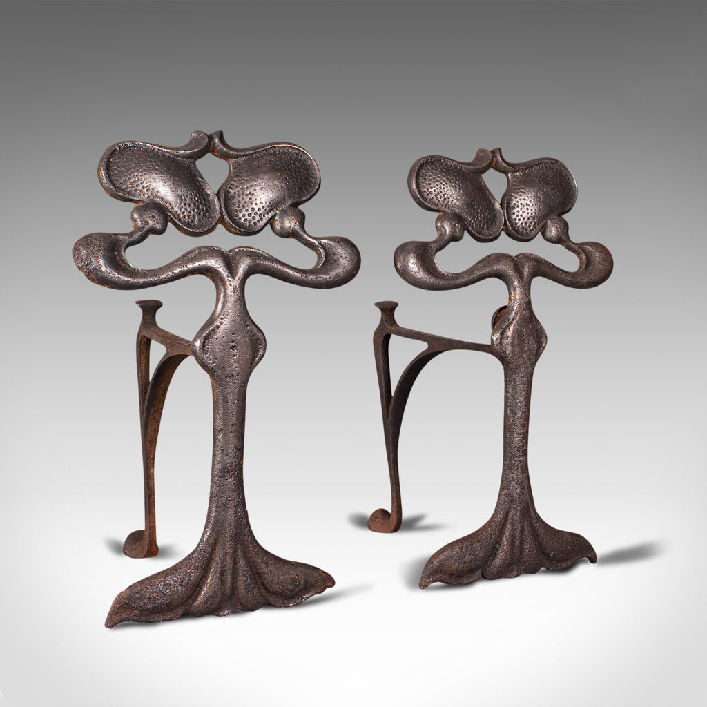 Pair Of Antique Andirons, French, Iron, Fire Dogs, Tool Rest, Art Nouveau, 1900