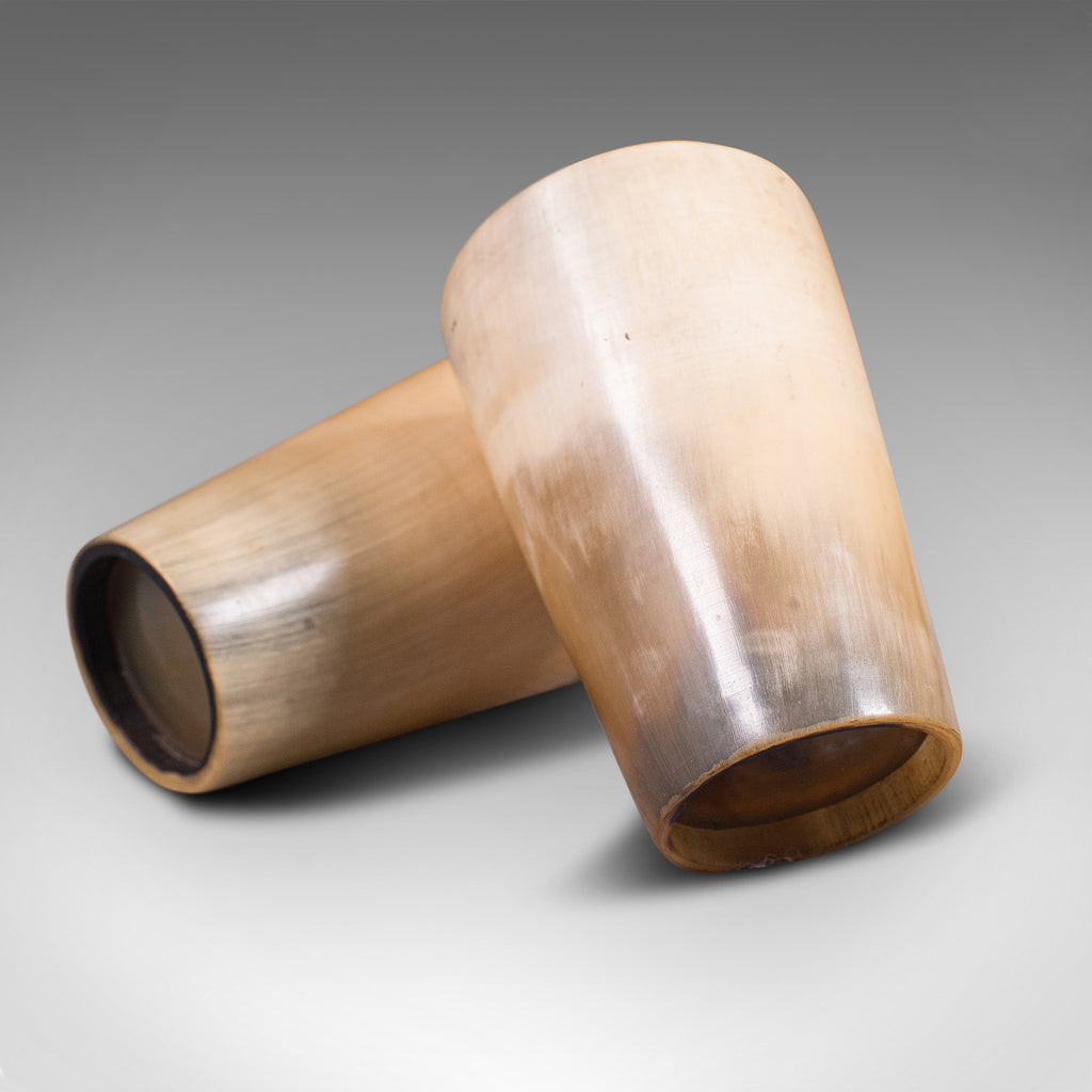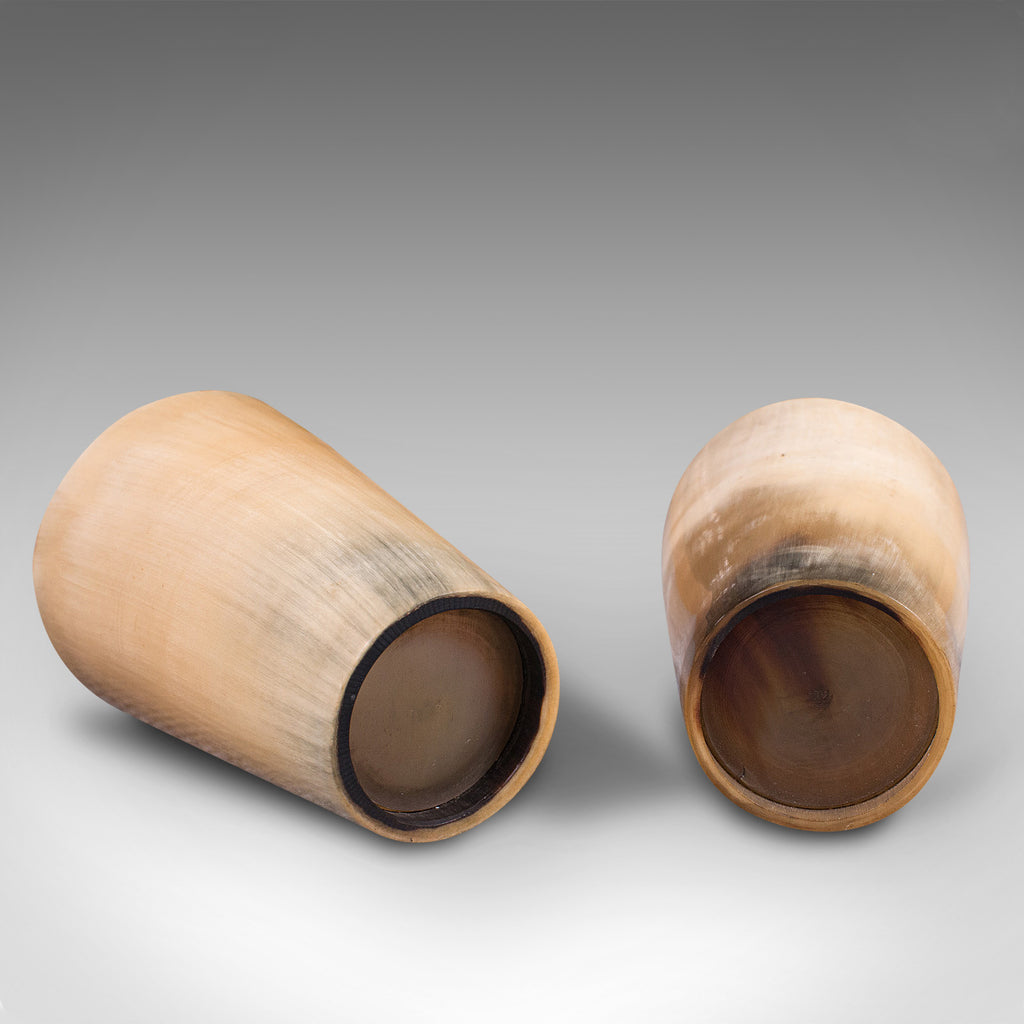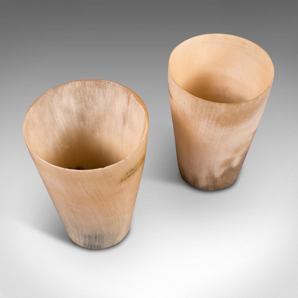 Pair Of Antique Scrimshaw Cups, Welsh, Ram's Horn, Carved Tumbler, Victorian