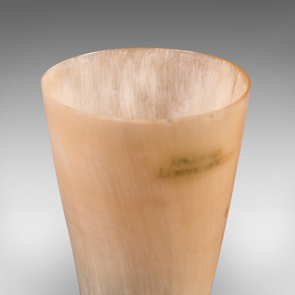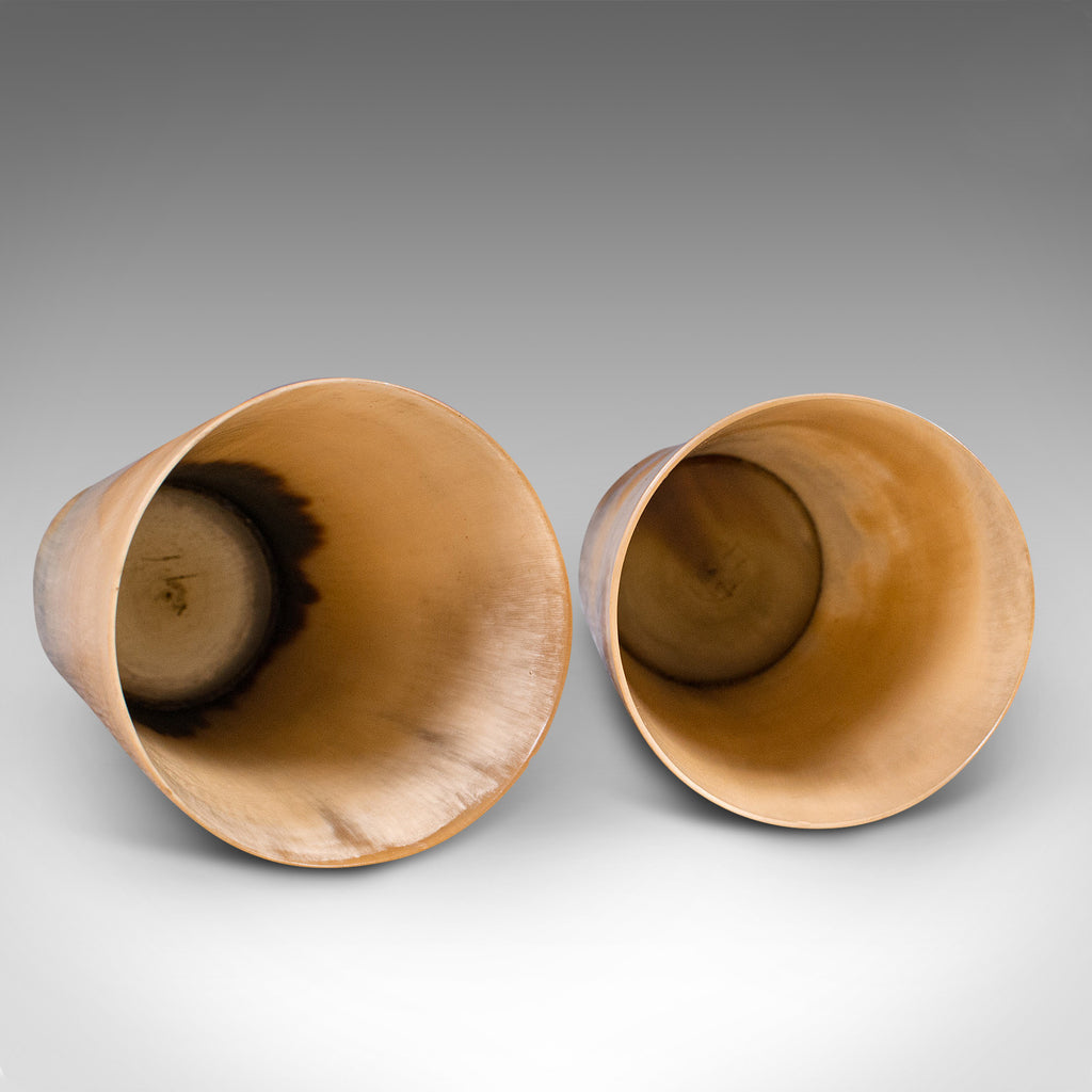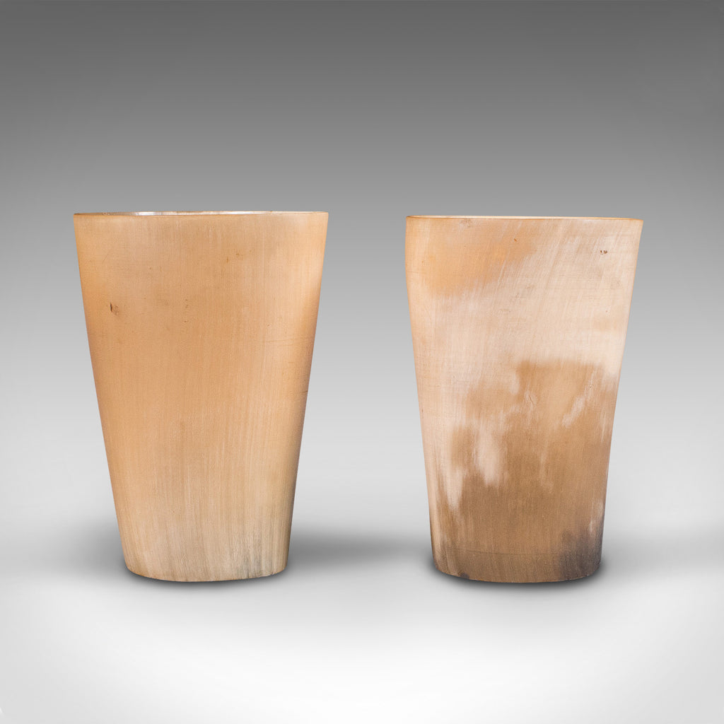Pair Of Antique Scrimshaw Cups, Welsh, Ram's Horn, Carved Tumbler, Victorian