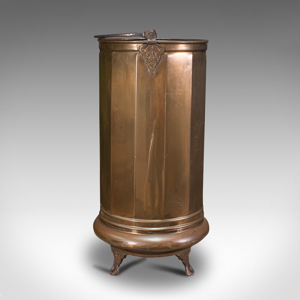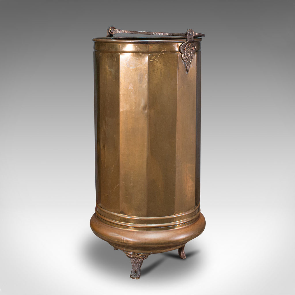 Pair Of, Antique Stick Stands, Brass, Umbrella Rack, Fireside Bin, Victorian