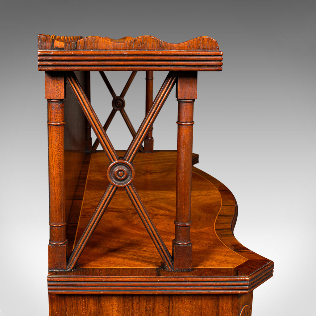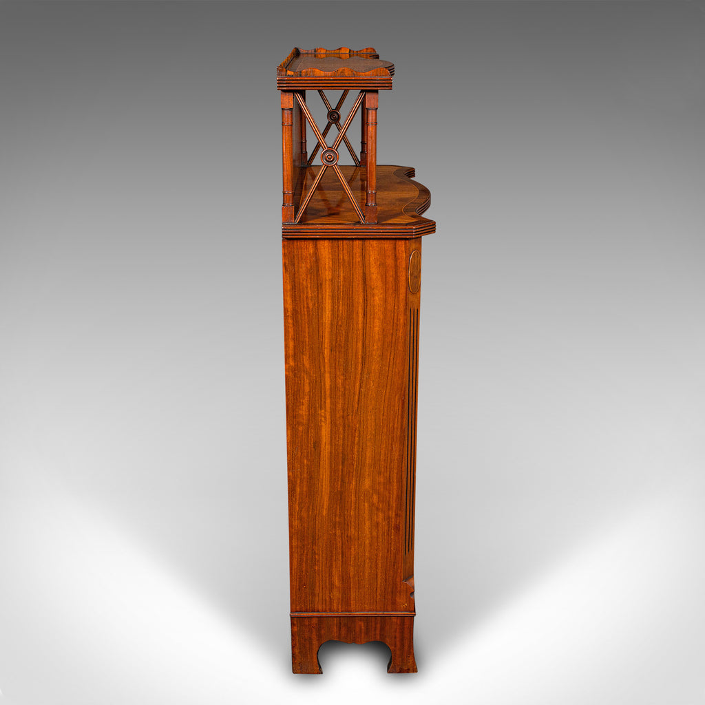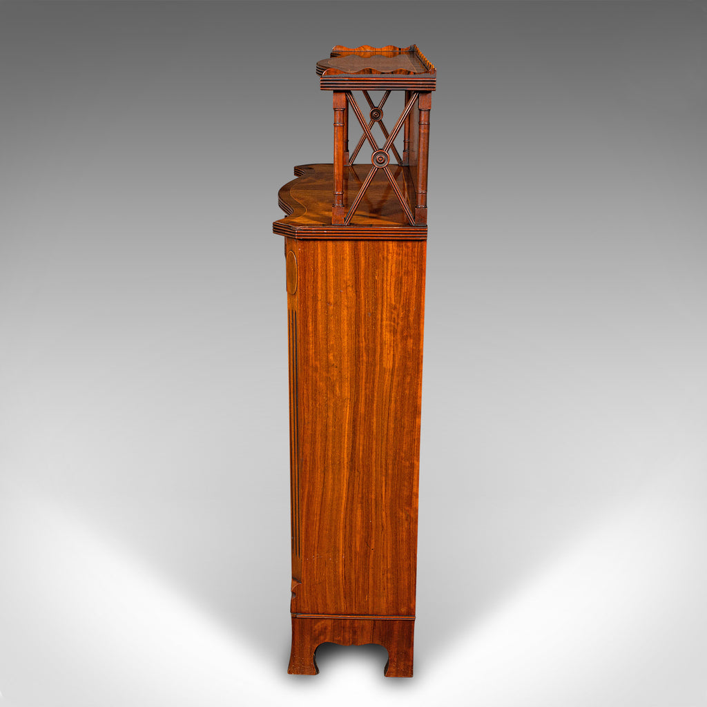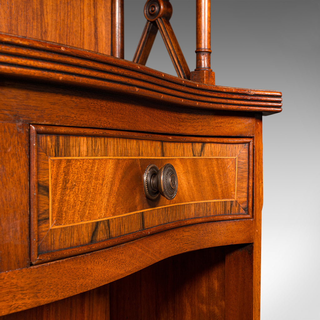 This is a quality vintage Regency revival book cabinet. An English, mahogany open bookcase, dating to the late 20th century, circa 1980.