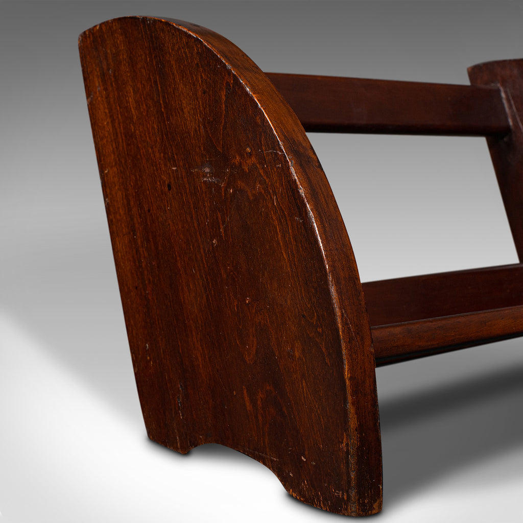 This is a small antique book rest. An English, stained pine novel rack, dating to the Edwardian period, circa 1910.