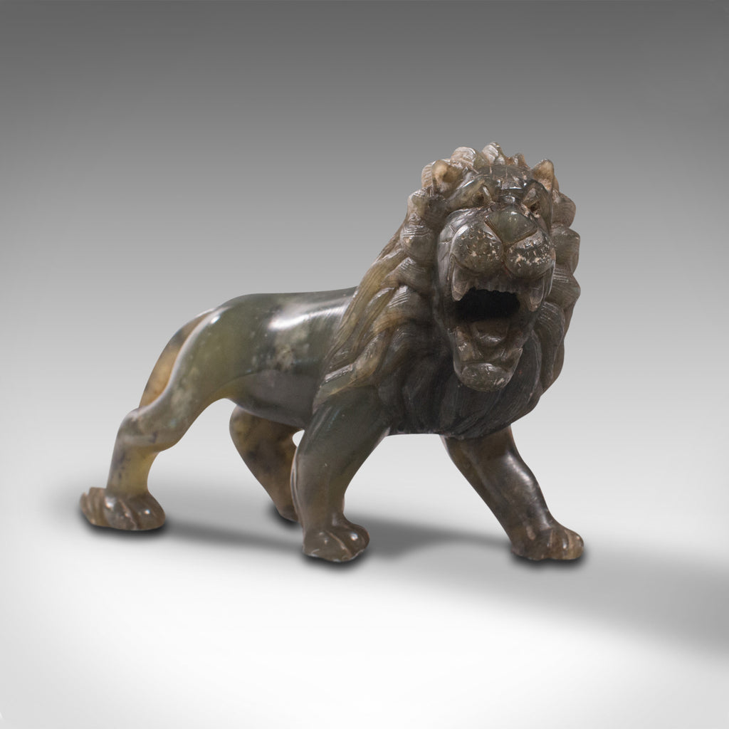 Small Antique Carved Lion, Chinese, Jade, Decorative Animal Figure, Victorian