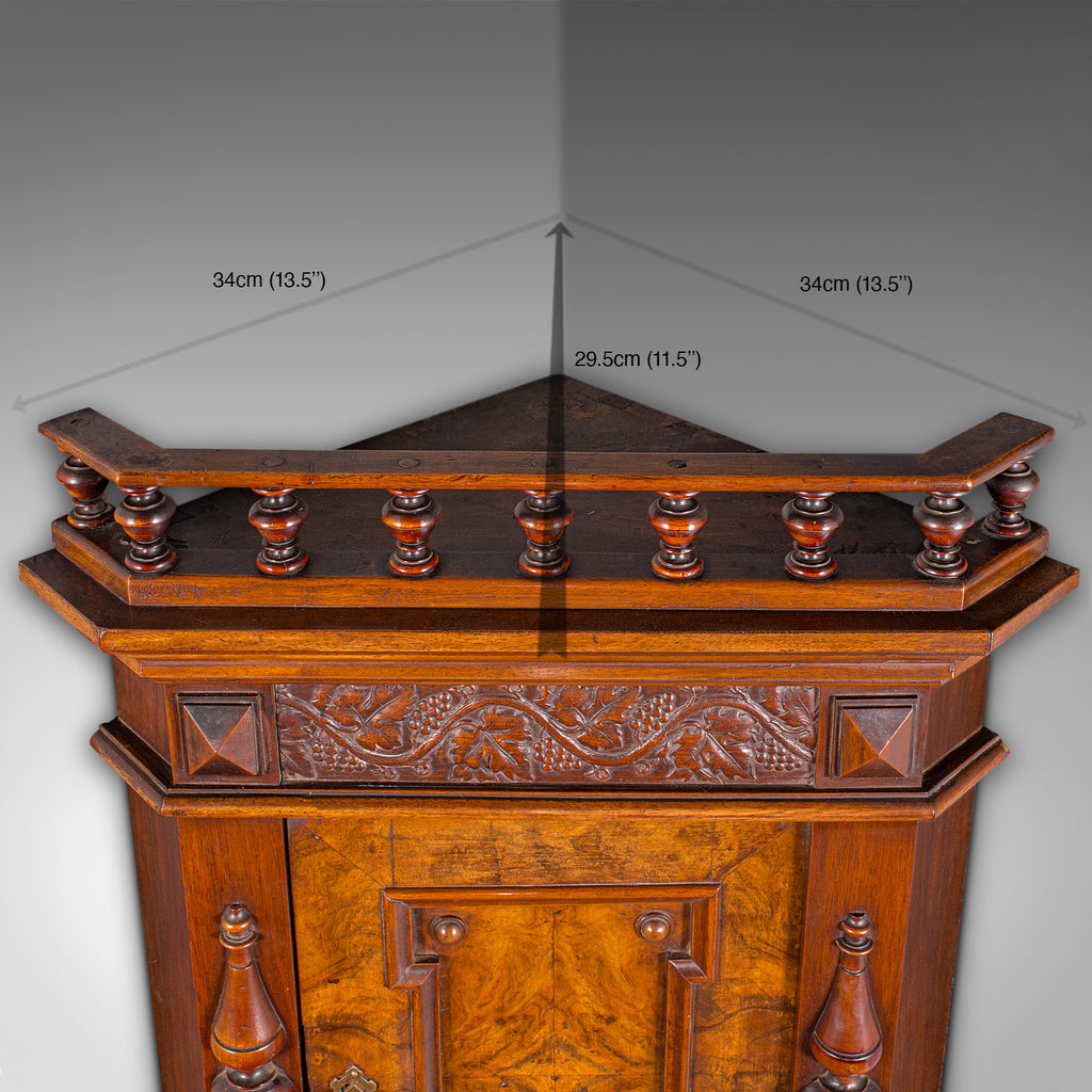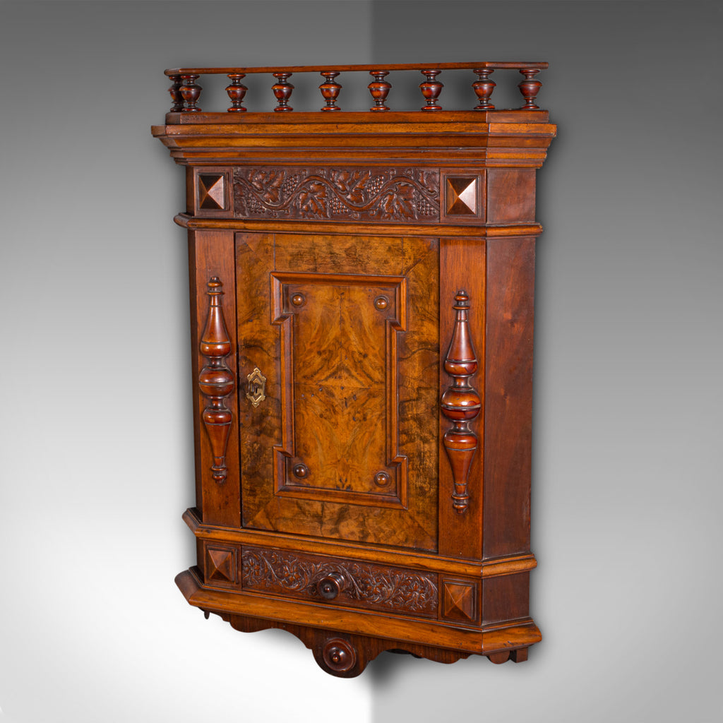 Small Antique Corner Wall Cupboard, Italian, Walnut, Cabinet, Victorian, C.1900