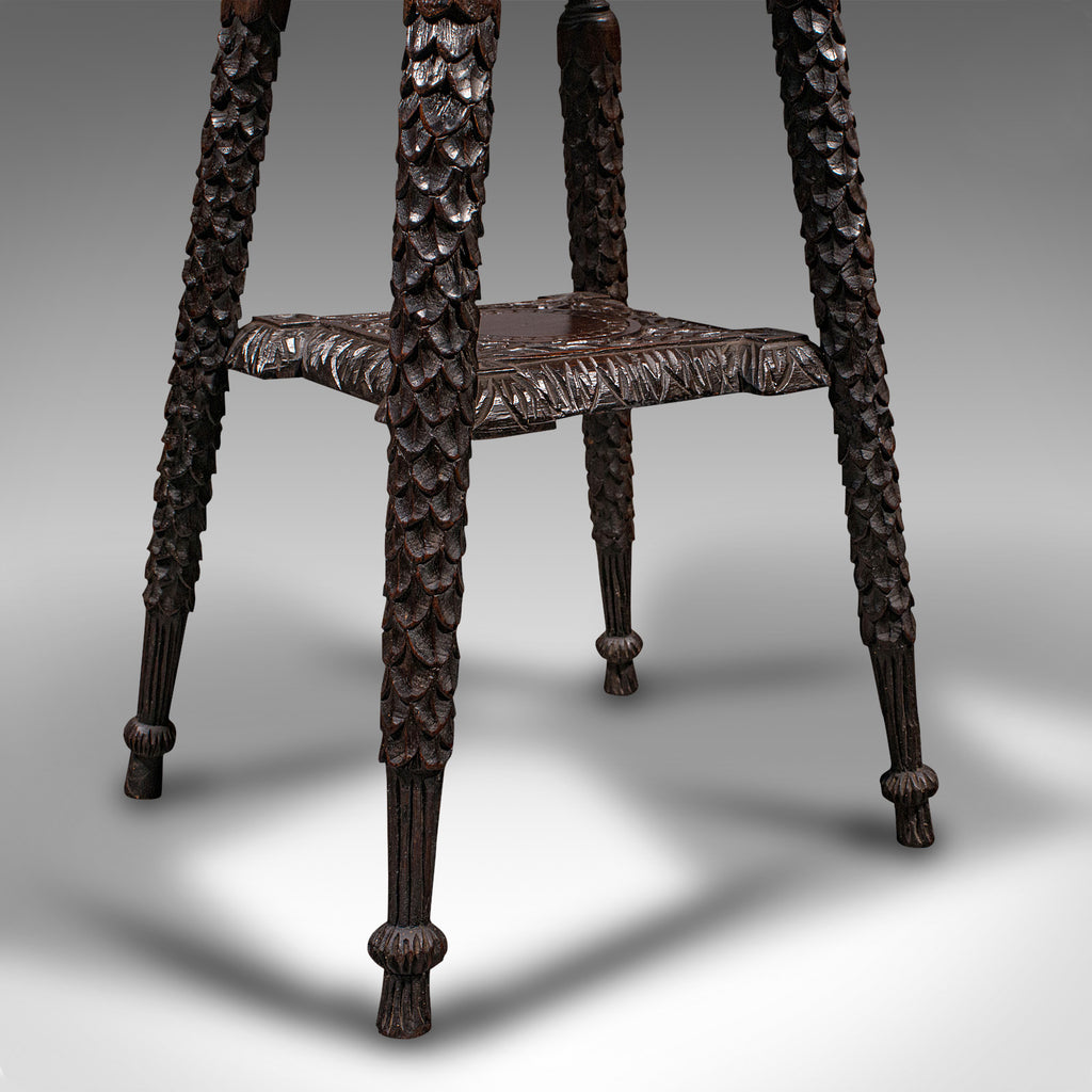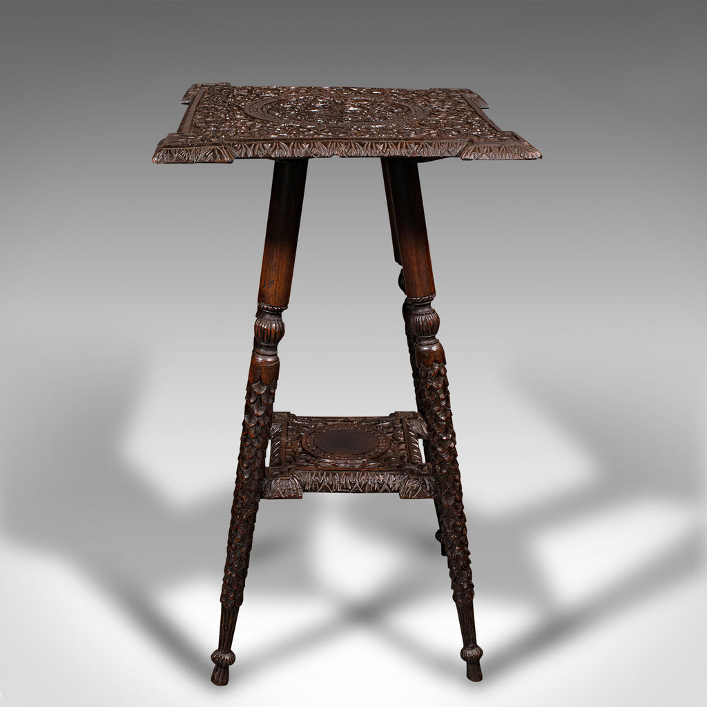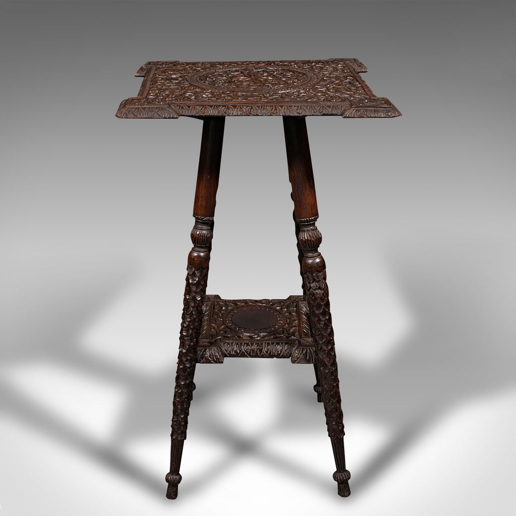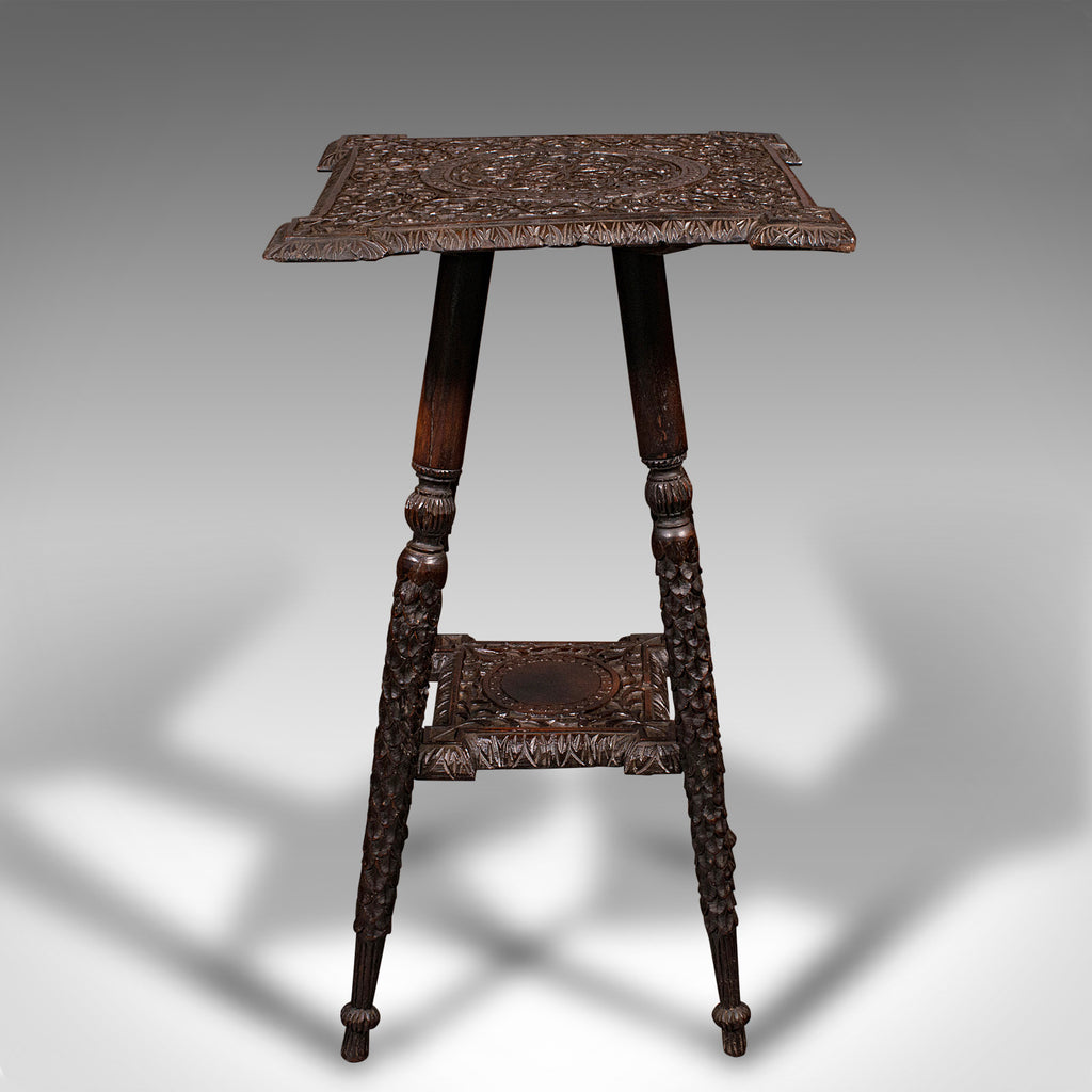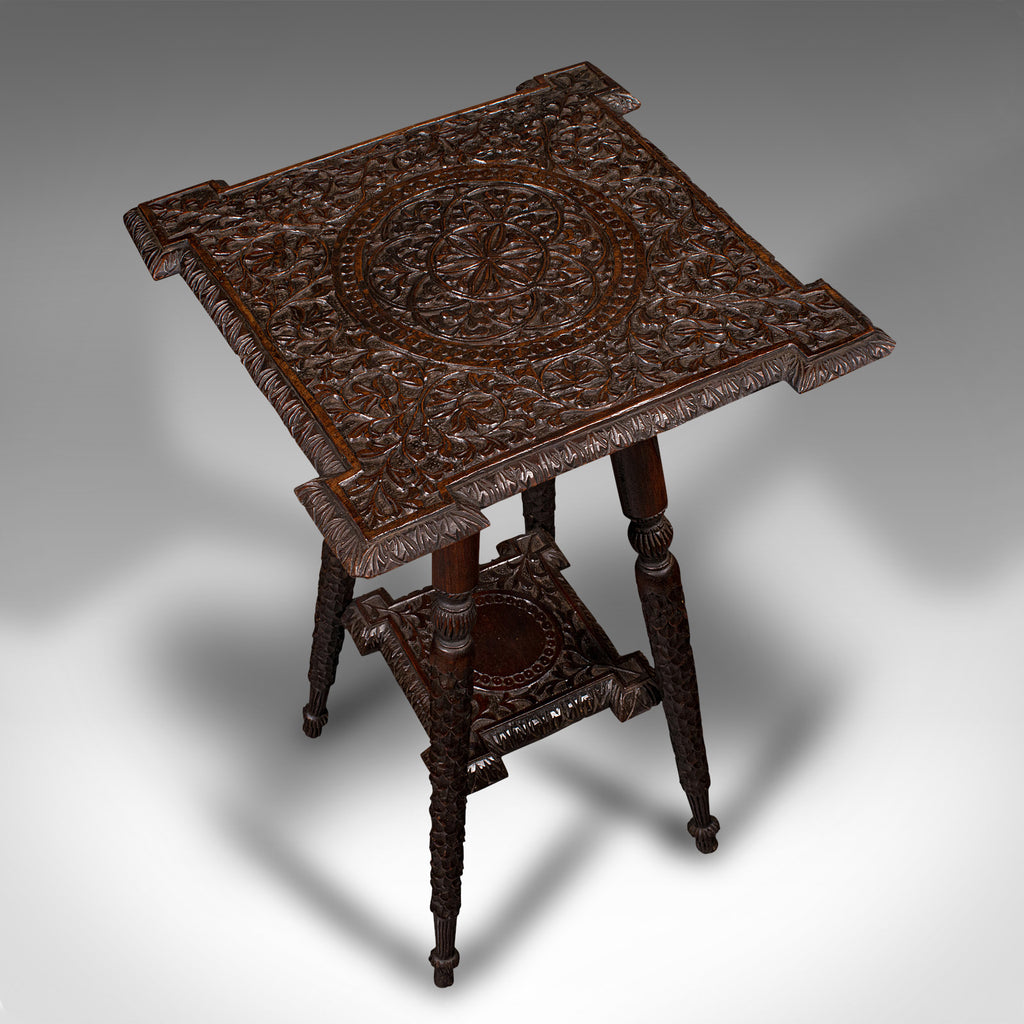 Small Antique Lamp Table, Indian, Carved Teak, Decorative, Occasional, Victorian