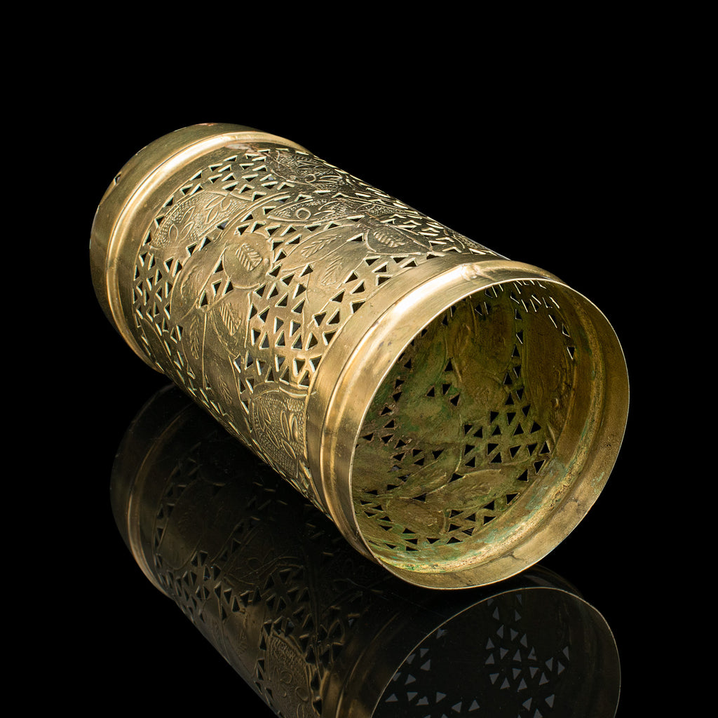 This is a vintage candlelight dome lamp. An Indian, pierced brass candle holder, dating to the early 20th century, circa 1930.