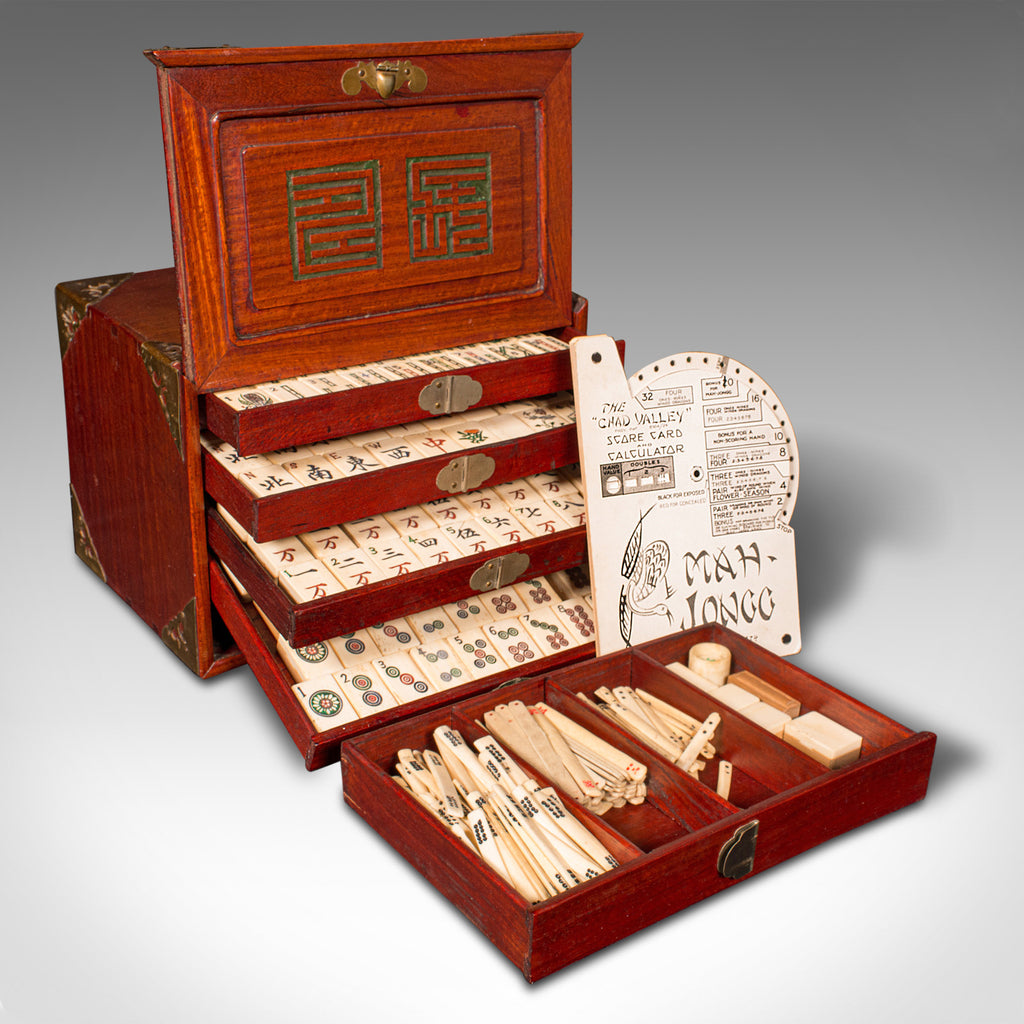 Vintage Mahjong Case, Chinese, Mahogany, Compendium, Game Set, Late 20th Century