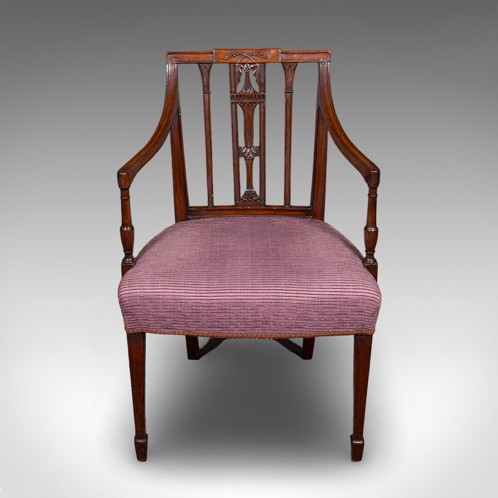 Antique Morning Room Chair, English, Desk, Elbow Seat, Sheraton Taste, Georgian