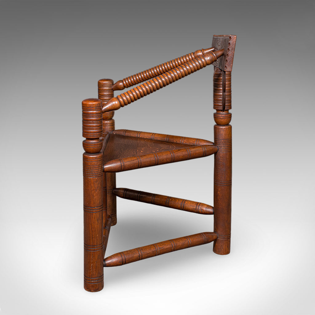 Antique Turner's Chair, English, Oak, Old Saxon, Elbow Seat, Victorian, C.1900