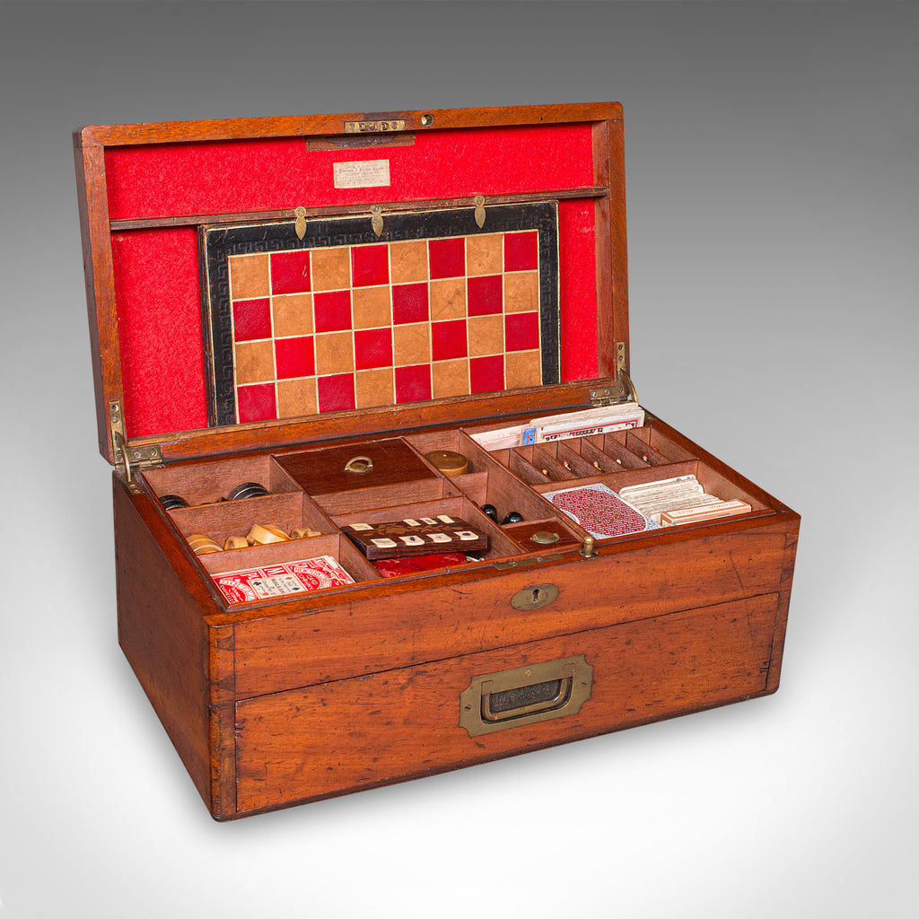 This is an antique games compendium. An English, mahogany gaming case by Gale & Lawday, dating to the Victorian period, circa 1880. A superb and comprehensive set, this compendium offers a wealth of classic games within an elegant and comprehensive presentation box — a true celebration of Victorian leisure and craftsmanship.