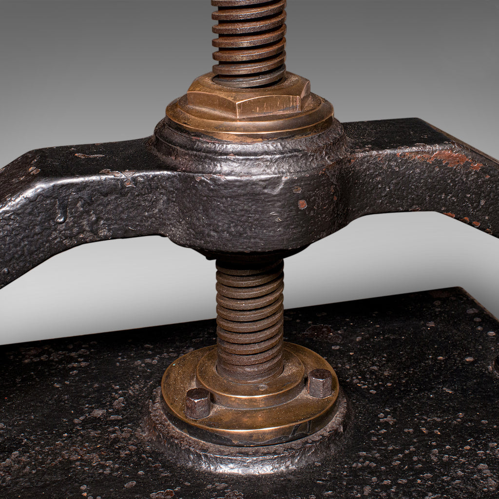 A fine and substantial Georgian cast iron and bronze book press, this example offers a wonderful blend of functionality, tactile quality, and historic charm. With its smooth operation and impressive form, it stands as both a working tool and a handsome decorative feature for the discerning collector. Delivered ready for the home or institution.