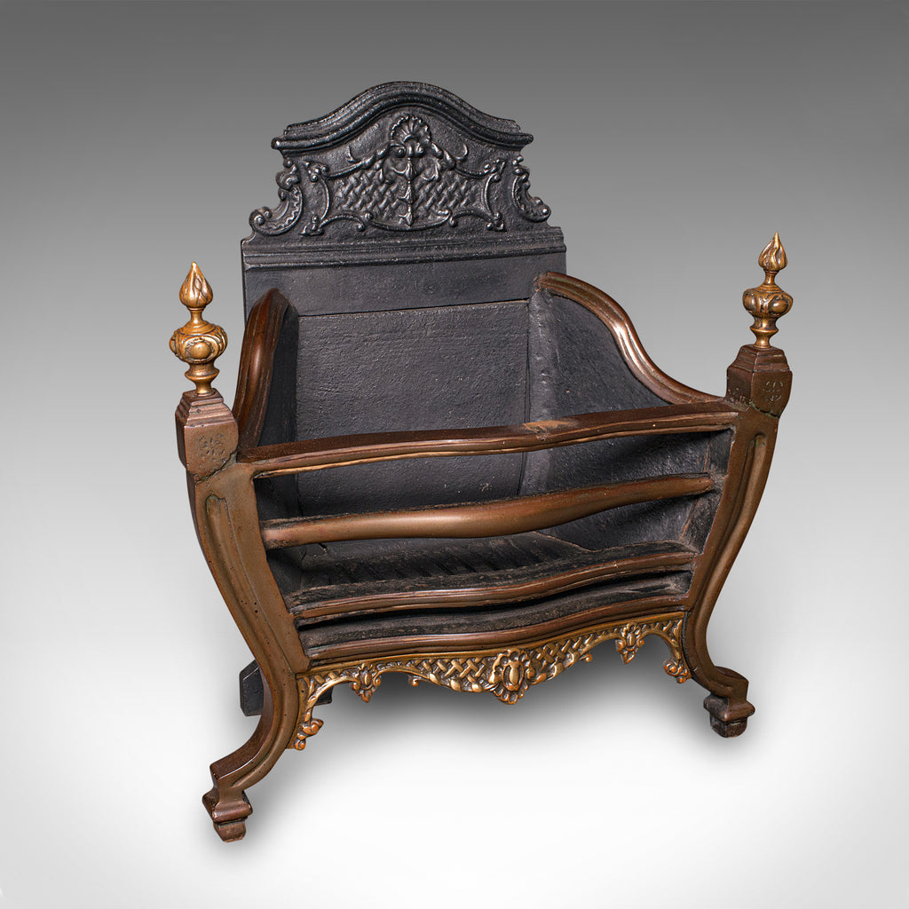 Antique Fire Basket, English, Cast Iron, Hearth, Georgian Revival, Victorian