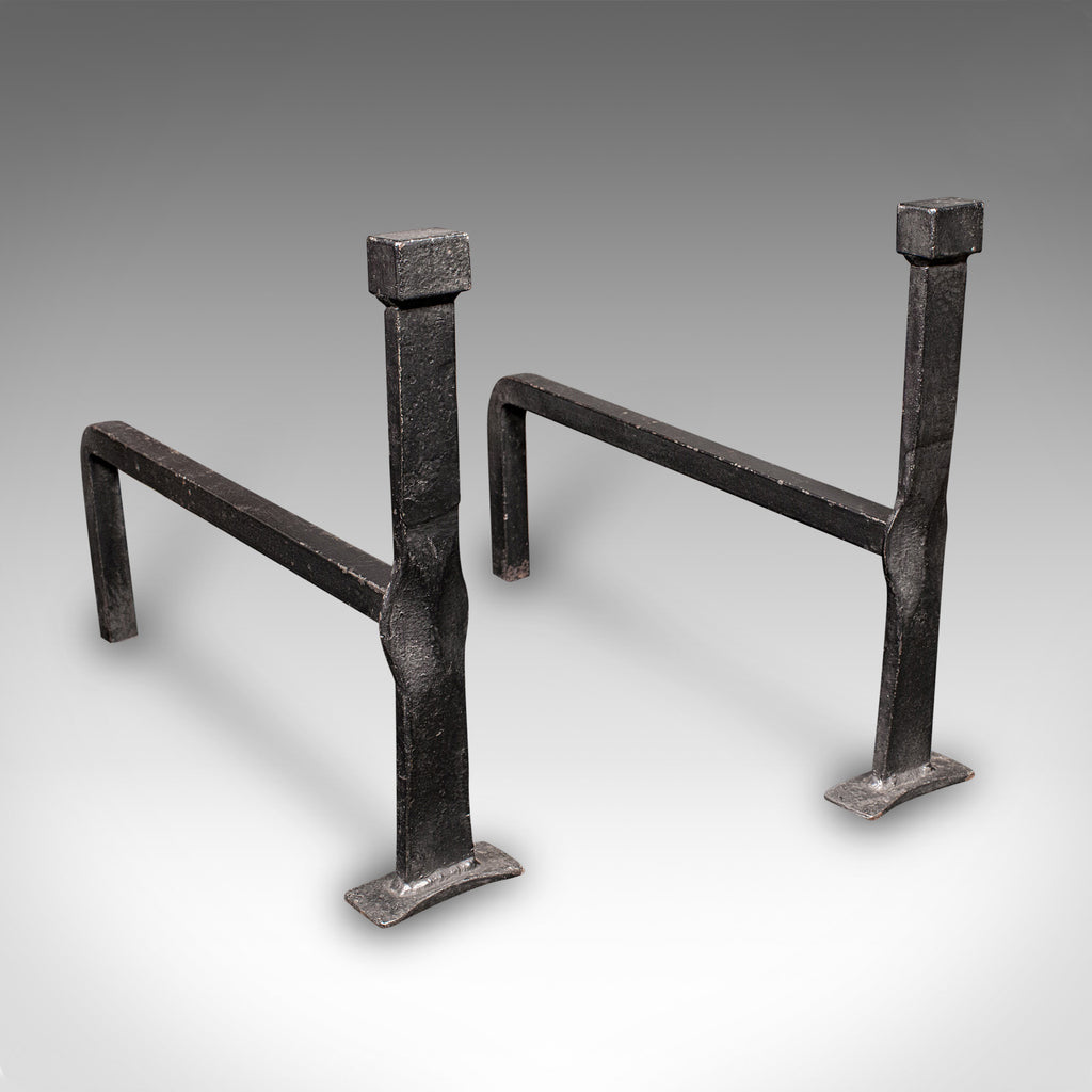 - Each andiron displays a distinctive scalloped motif to the centre, a subtle decorative flourish within the simple, practical form