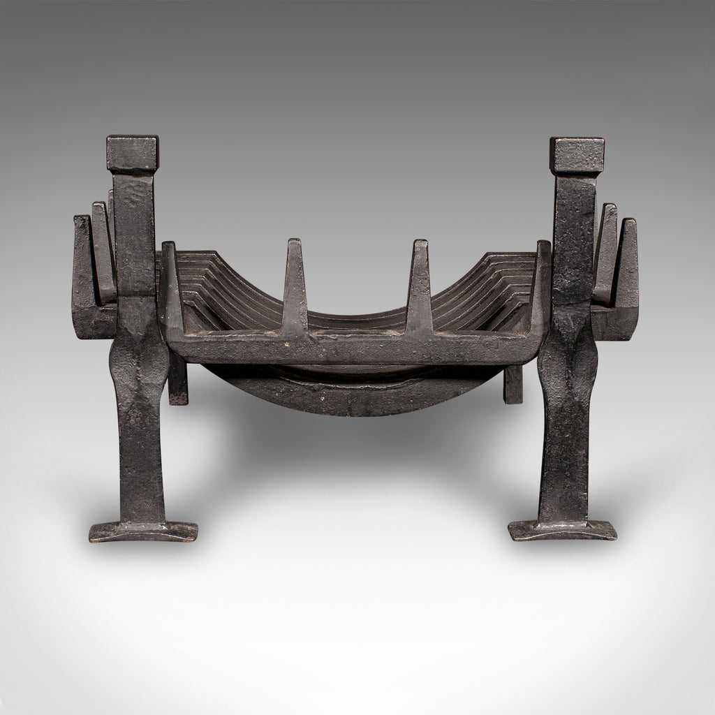 Antique Fireplace Set, English, Iron, Fire Basket, Pair of Andirons, Edwardian