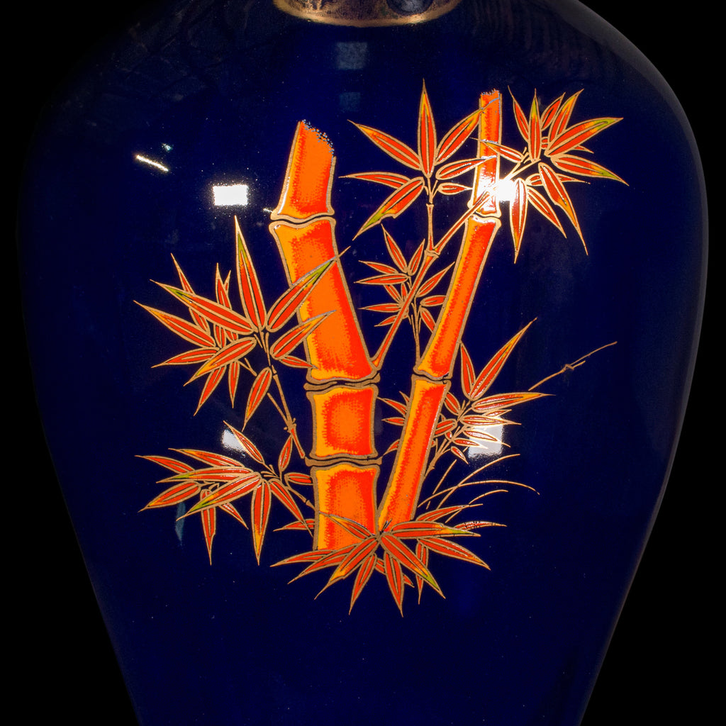 Vintage Tiger Vase, Chinese, Blue Lacquer Ceramic Baluster Urn, Oriental, C.1980