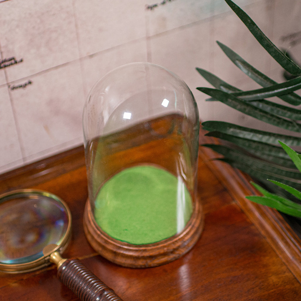 - Emerald green baize cushion interior, adding contrast and enhancing displayed items