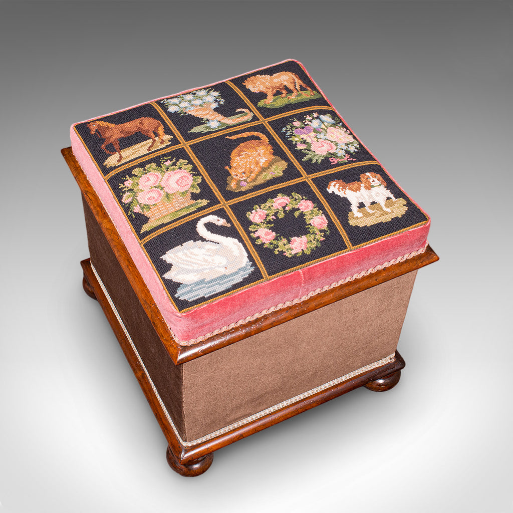 Antique Ottoman Footstool, English, Needlepoint, Dressing Stool, Victorian, 1860