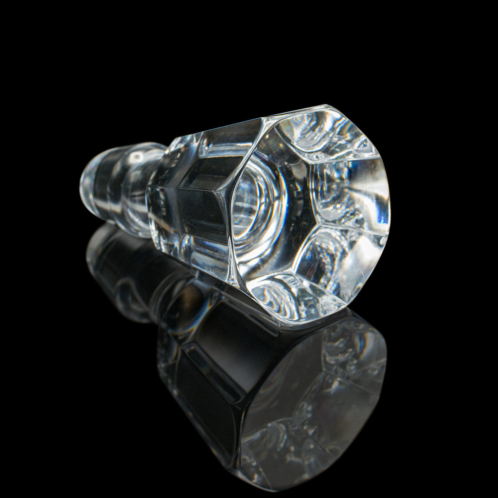 - Faceted glacier stopper sits neatly within the flared stem for a secure fit