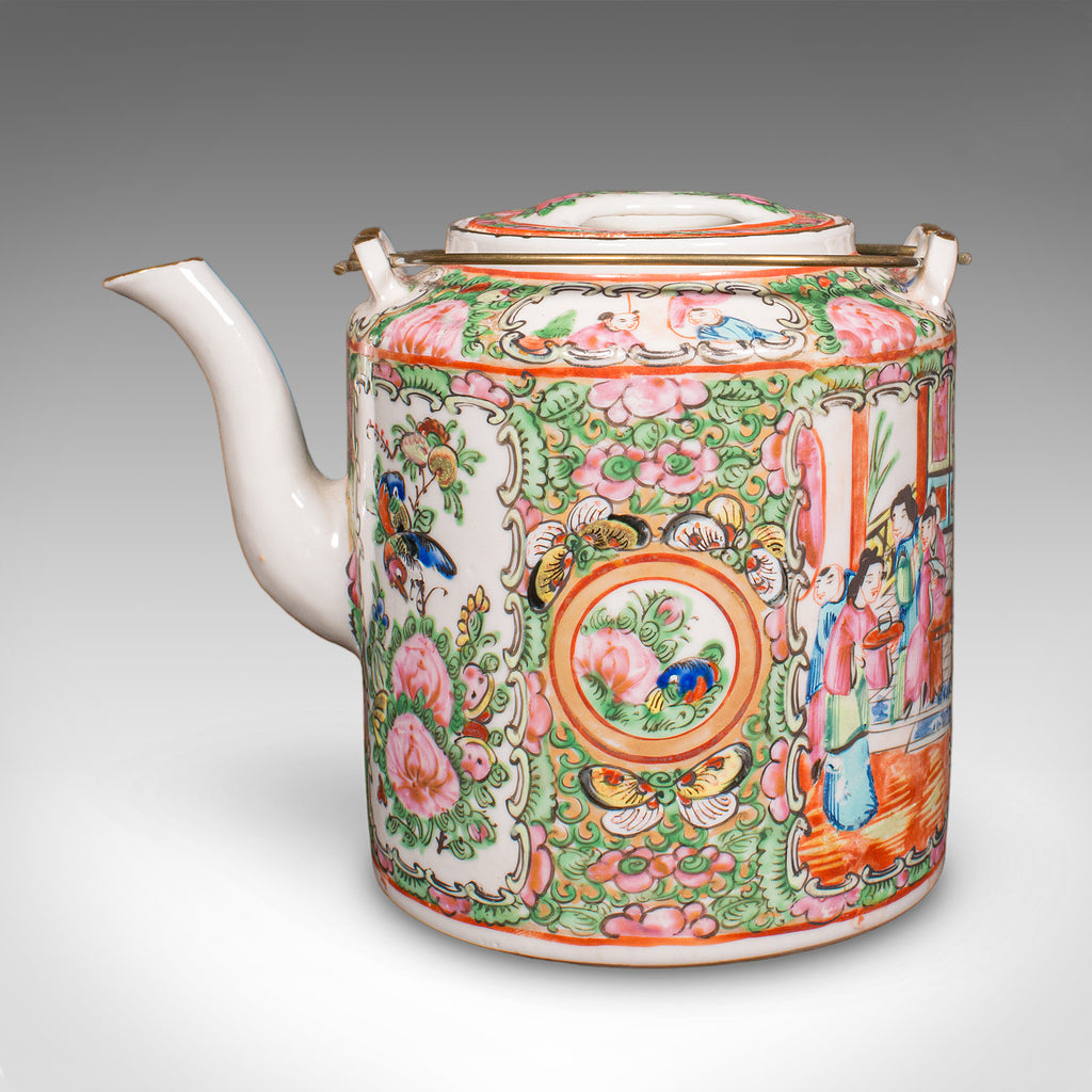- Fascinating cased teapot, with the popular Famille Rose decoration