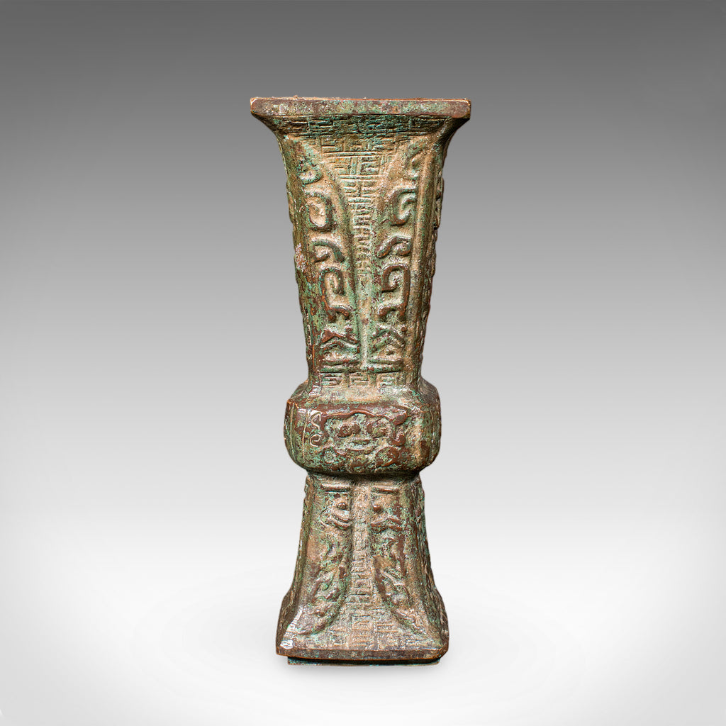 Antique Gu Ritual Vessel, Oriental, Bronze, Ceremonial, Posy Vase, Victorian