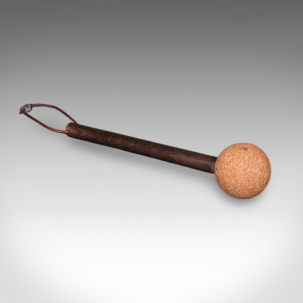- Cork ball striker, dressed with a leather strap for resting upon the frame