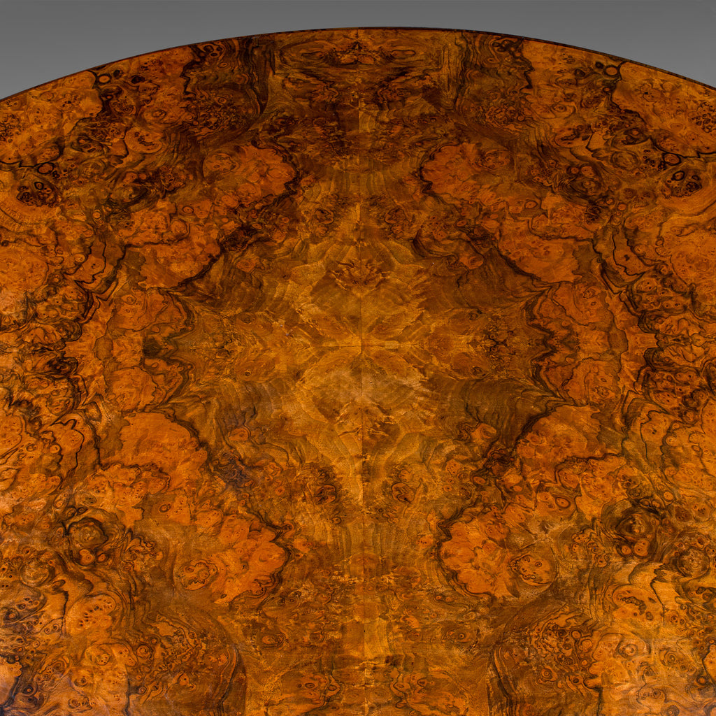 Antique Display Table, English, Burr Walnut, 4 Seat, Oval, Centre, Victorian