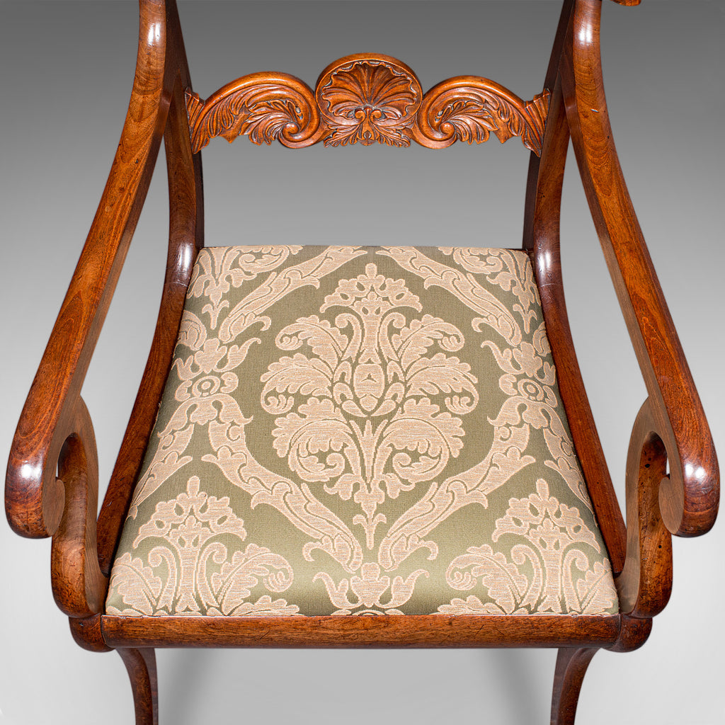 Antique Elbow Chair, English Drawing Room Seat, Study, Bedroom Armchair, Regency
