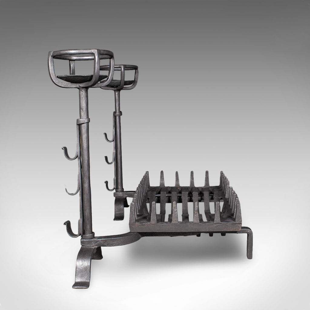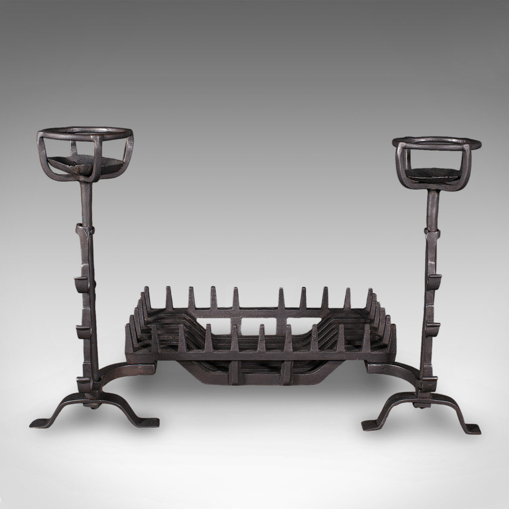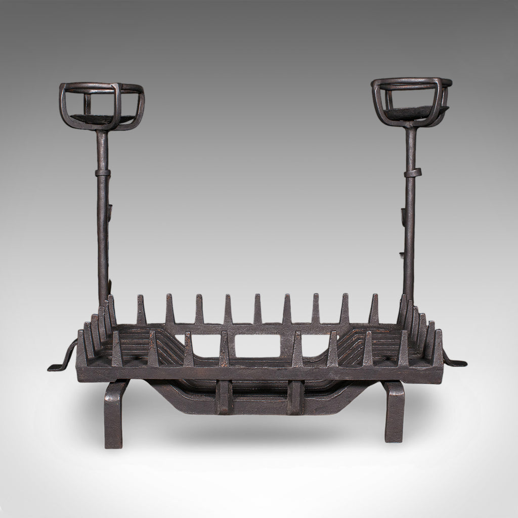 Antique Fireplace Set, English Cast Iron, Fire Basket, Mulling Andiron, Georgian