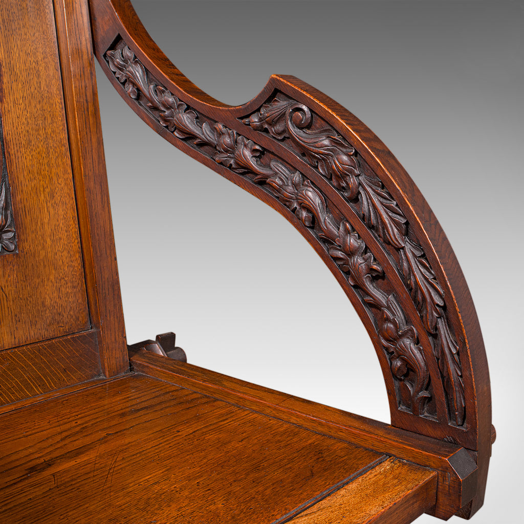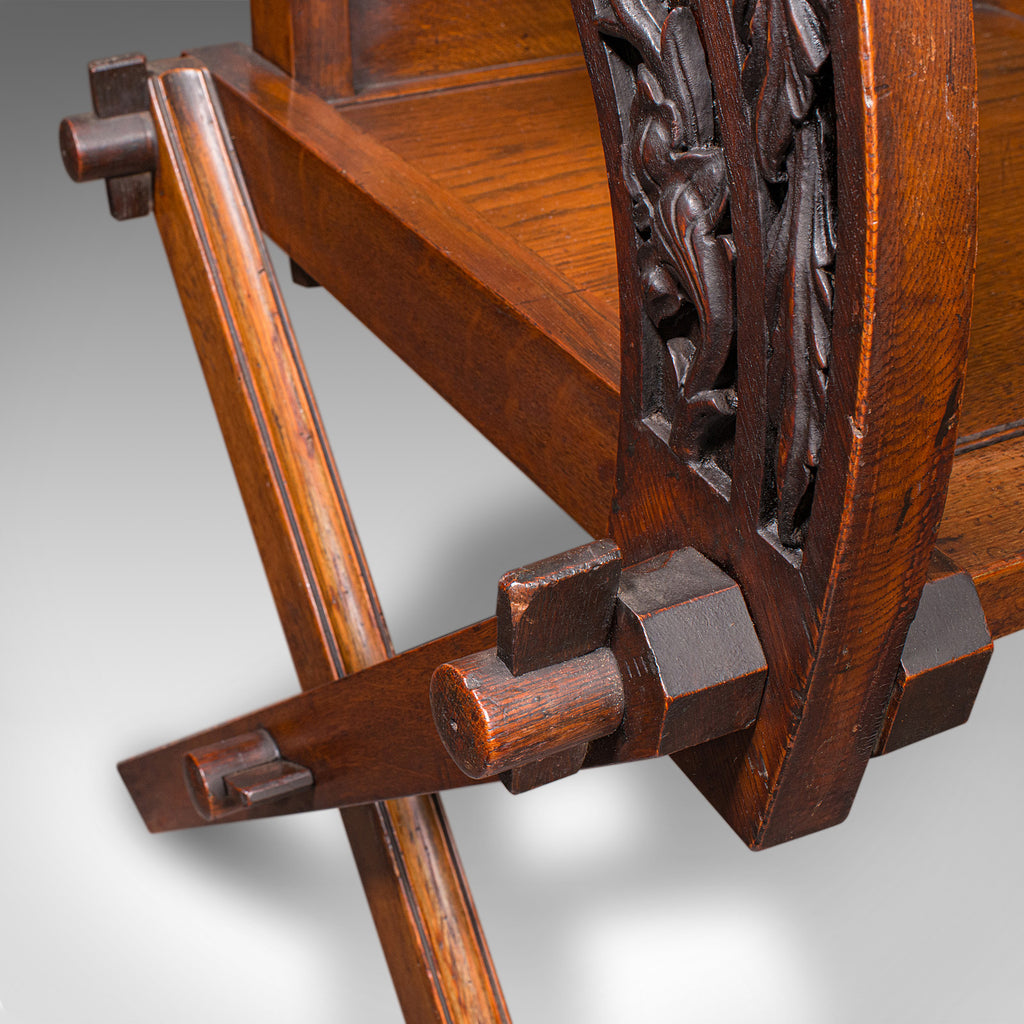 Antique Glastonbury Chair, English, Oak, Elbow Seat, Gothic Revival, Victorian