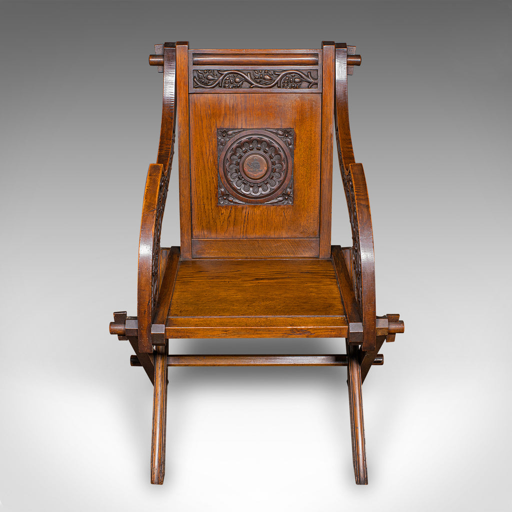 This antique Glastonbury chair represents the finest qualities of late Victorian craftsmanship with robust construction, intricate carving, and enduring visual appeal. A striking addition to the study, hall, or fireside, offering both historical interest and decorative refinement. Solid joints and construction, delivered ready for the home.