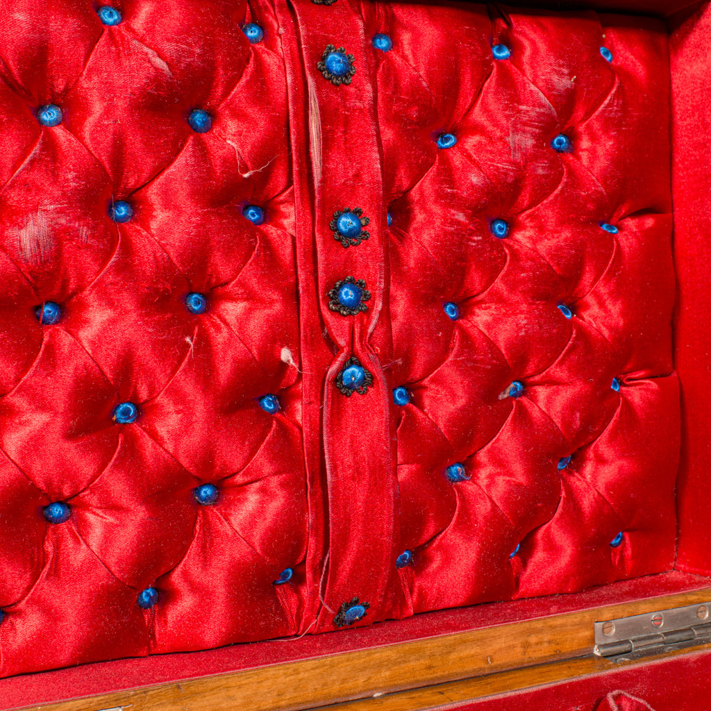 - Striking silk cotton interior lining finished in a rich scarlet hue