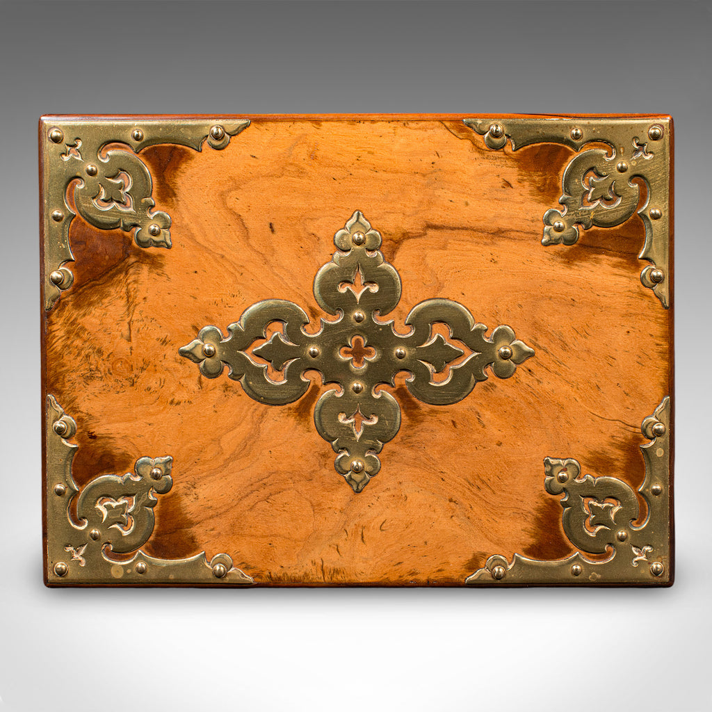 Antique Gothic Revival Sewing Case, Scottish, Walnut, Brass, Workbox, Victorian