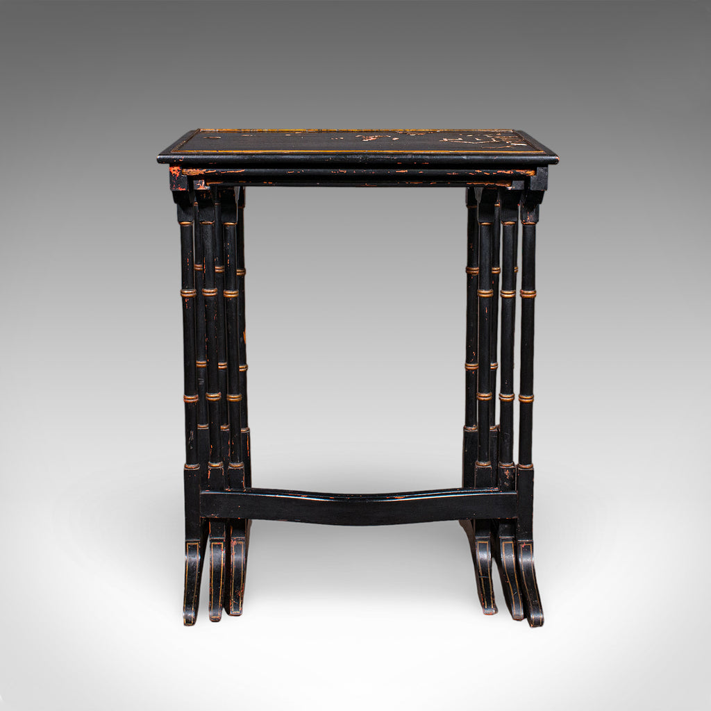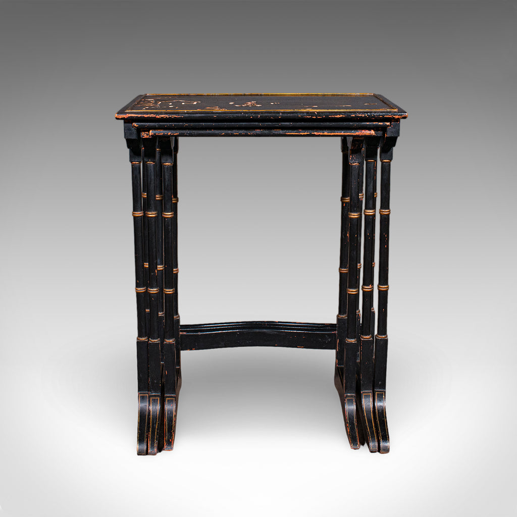 Antique Nesting Table Trio, English, Japanned, Occasional, Waring & Gillow, 1910