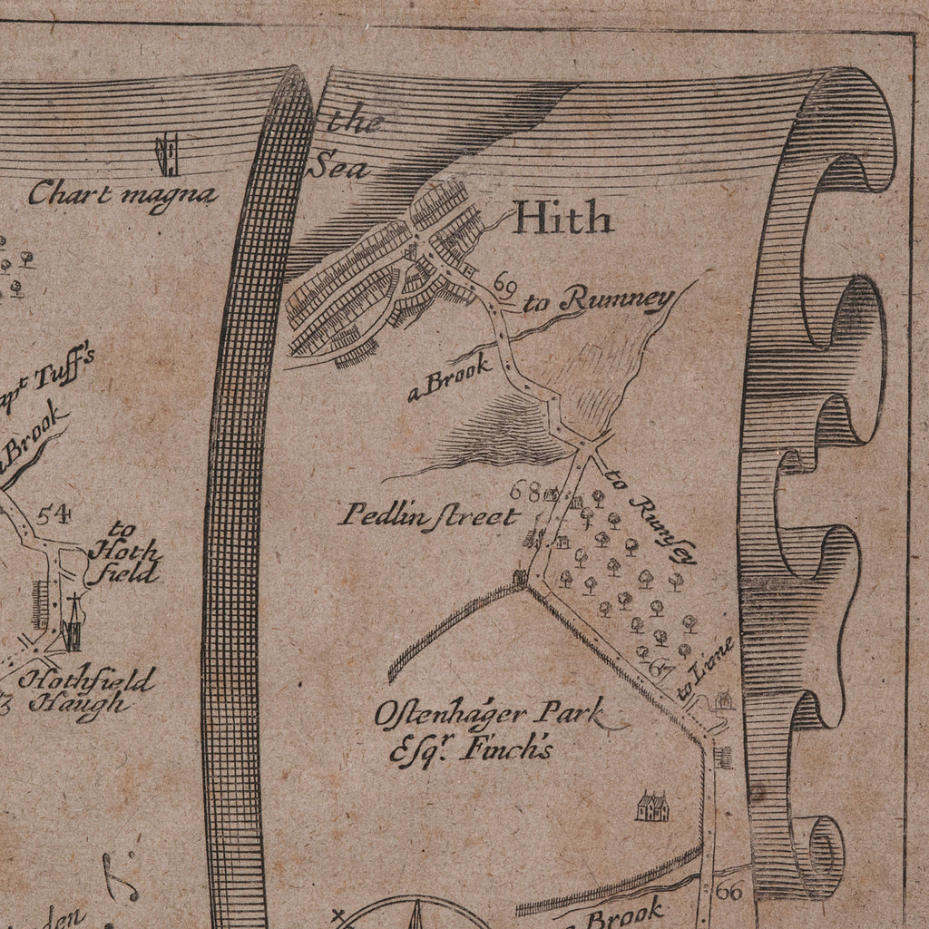 Antique Road Map, London to Hythe, Kent, English, Cartography, John Ogilby, 1675