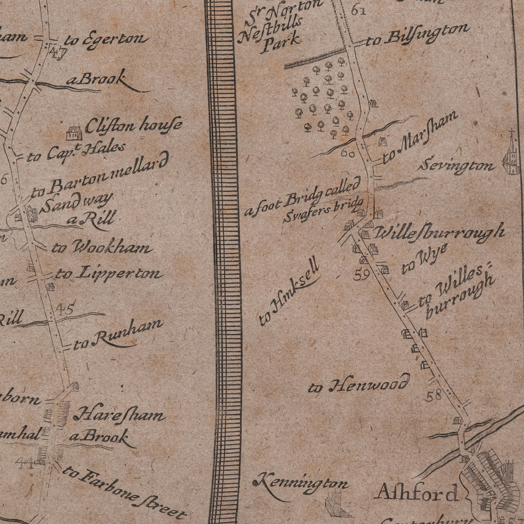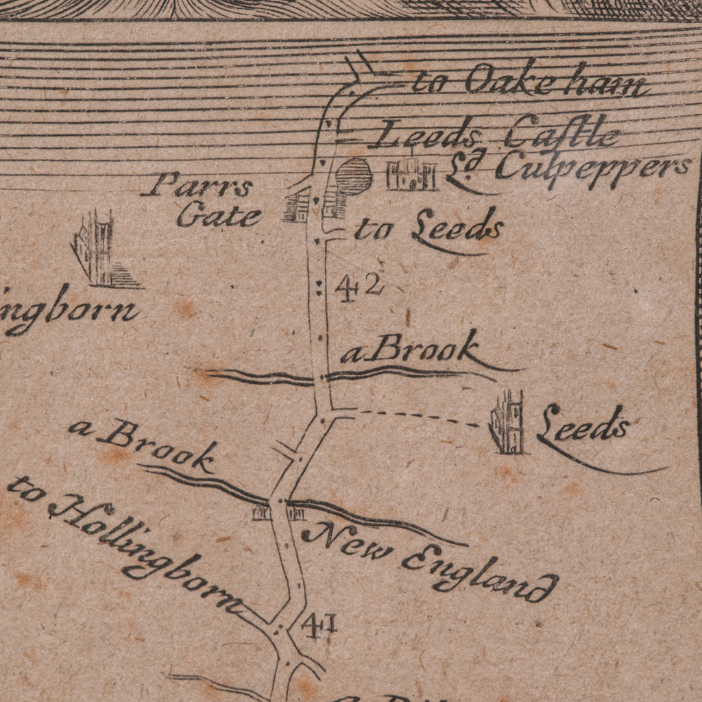 - Skilfully engraved across six vertical panels from London (bottom left) to Hythe (top right)