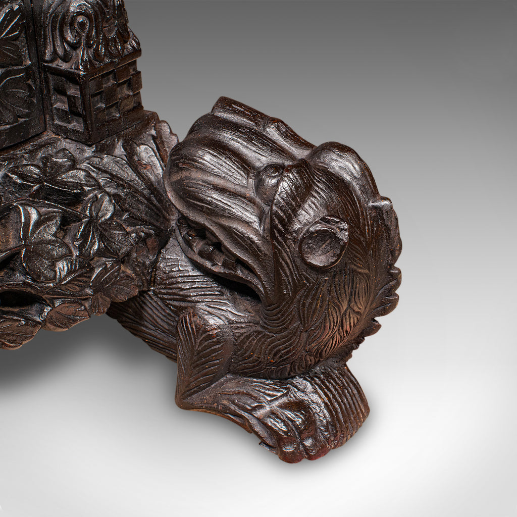 A truly captivating Ceylonese carved teak corner cabinet, this late Victorian gin cupboard unites exquisite hand-carved detailing, rich material quality, and practical elegance. A distinguished statement piece for those who appreciate fine colonial furniture and 19th century craftsmanship. Solid joints and construction, delivered ready for the home.