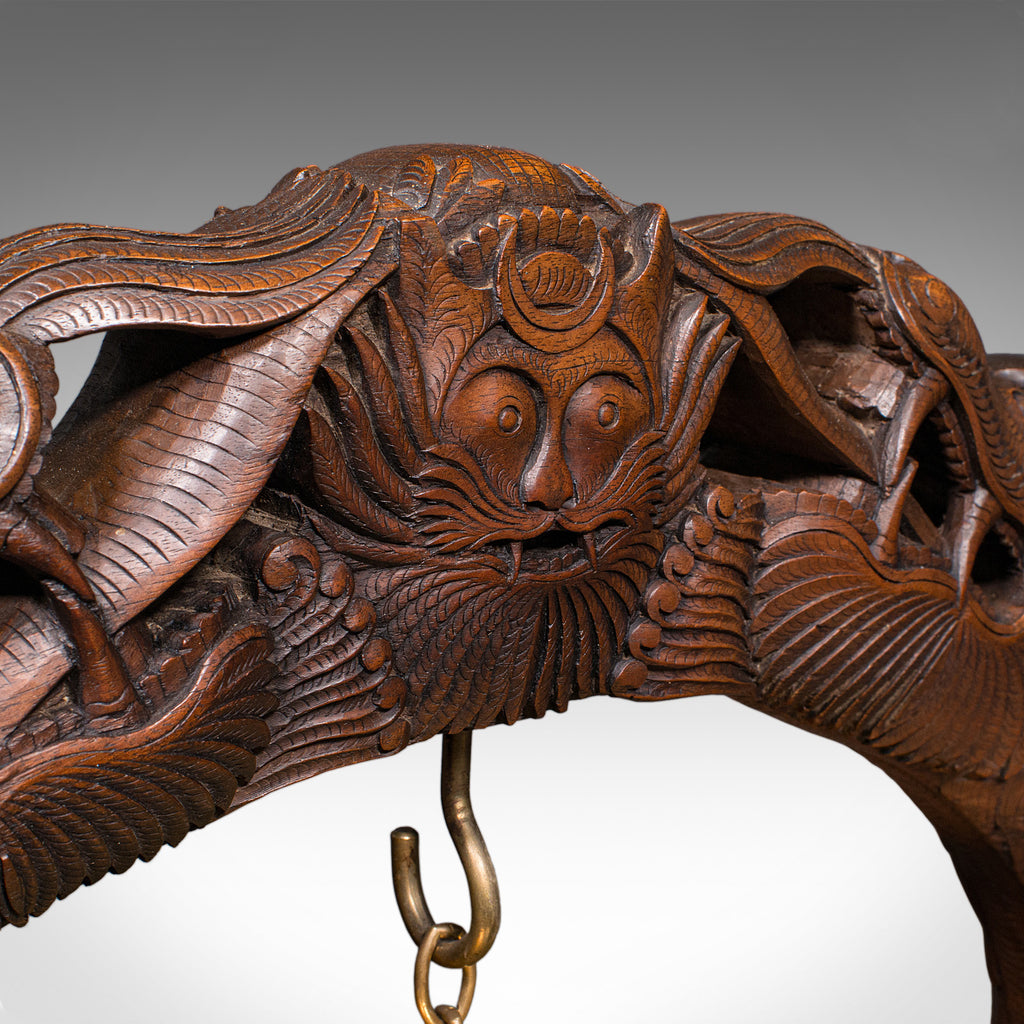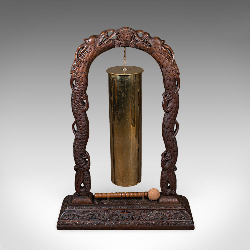 Large Vintage Alarm Gong, Oriental, Hardwood Chime Stand, Brass, Art Deco, 1930