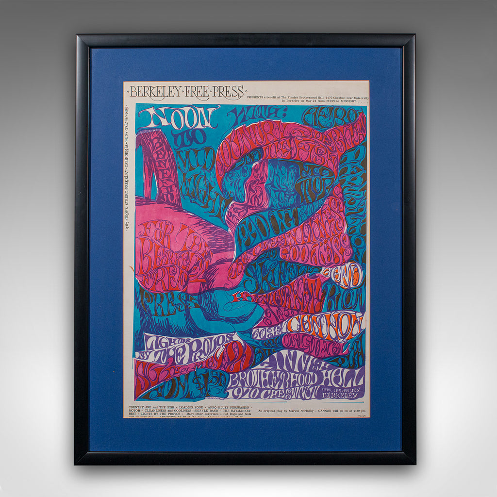 This is a captivating vintage concert poster, rich with psychedelic art heritage and Berkeley Free Press history. Delivered ready to display.