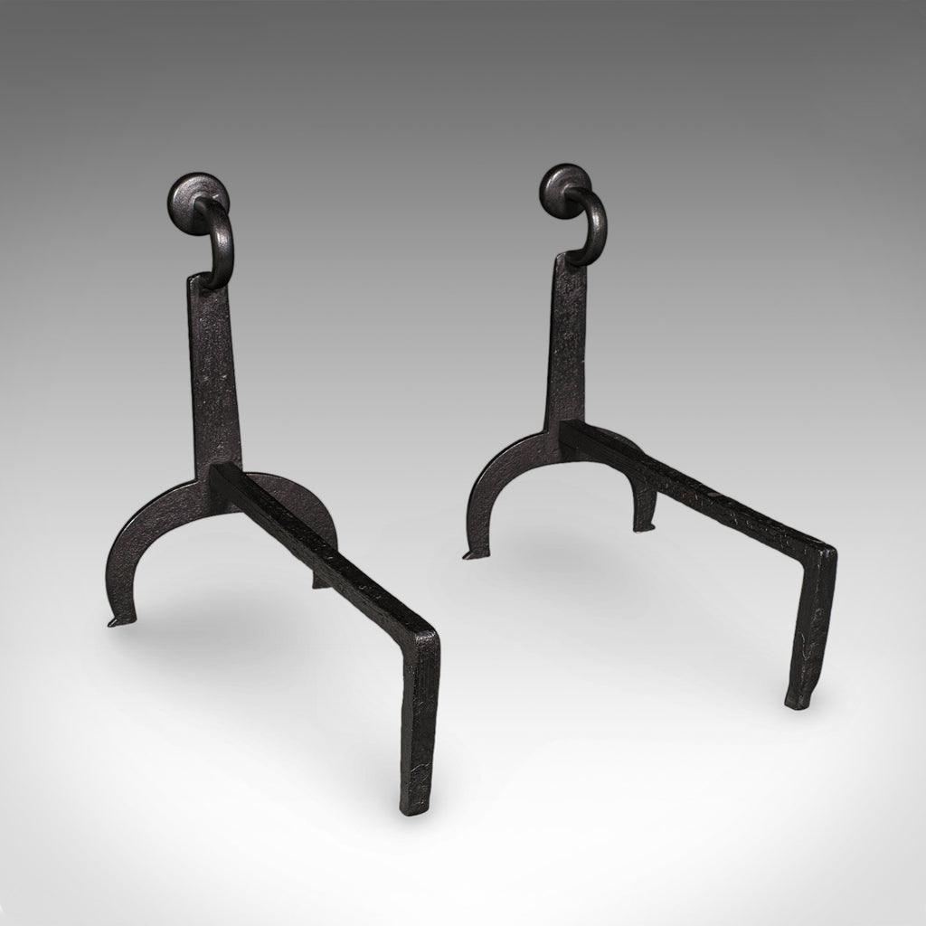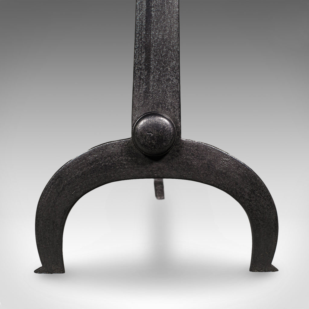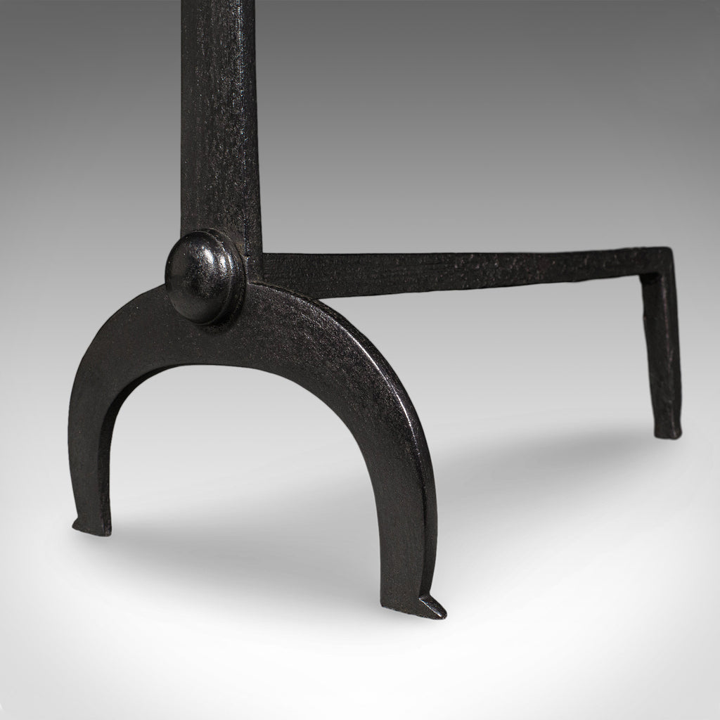 Pair of Antique Fire Dogs, English, Wrought Iron, Fireside Andiron, Victorian