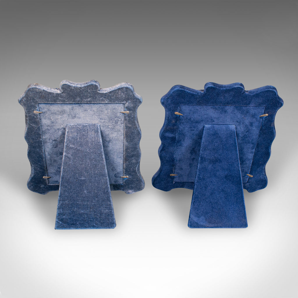 This is a pair of vintage picture frames. An English, silver plated 5x7 ratio photo display, dating to the Art Deco period, circa 1930. Charming pair of frames with a quality appearance and useful profile.