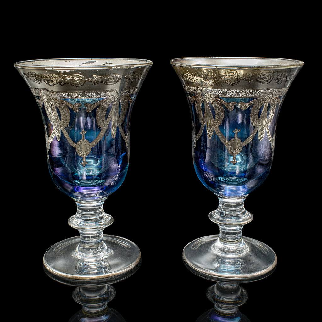 With their elegant form and vivid colouring, this set of Italian vintage wine goblets will bring a stylish flourish to any dining table, drinks cabinet or collector’s showcase. Delivered ready for the home.