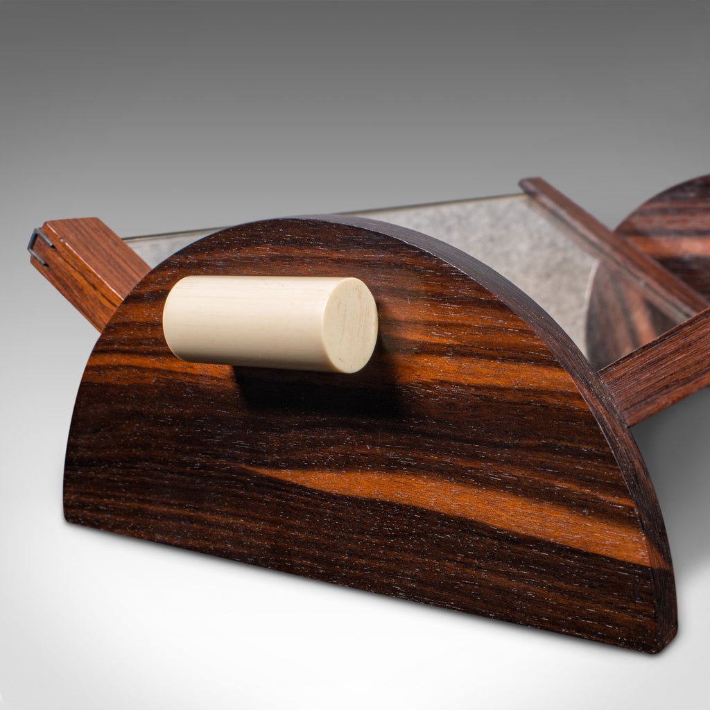 This is a small vintage mirrored book trough. An English, rosewood and glass angled novel rest, dating to the Art Deco period, circa 1940.